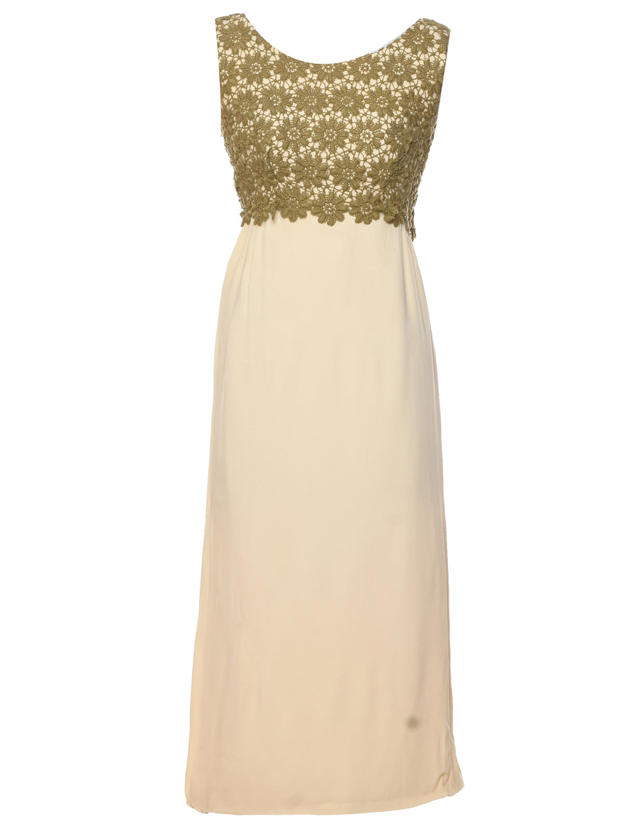 Vintage 1970s Pale Yellow Crochet Detail Maxi Dress - S