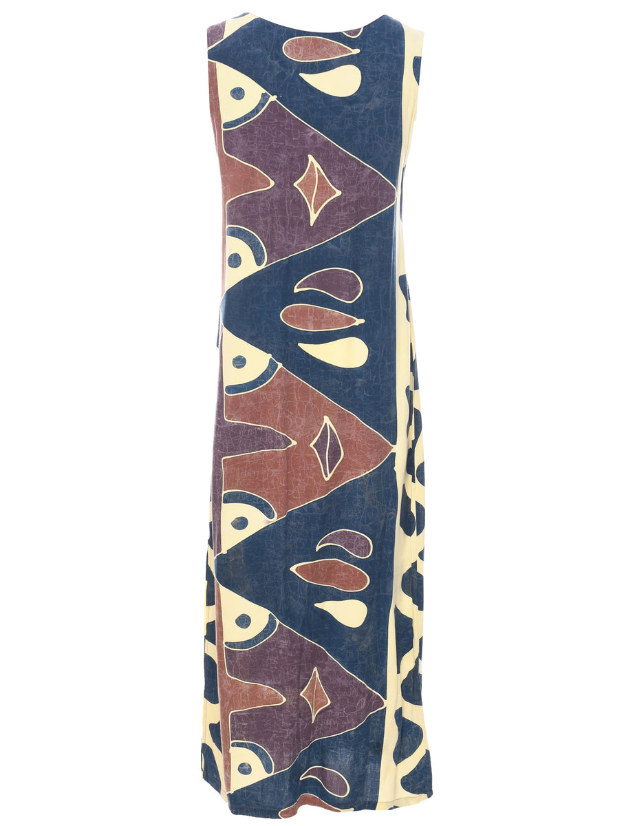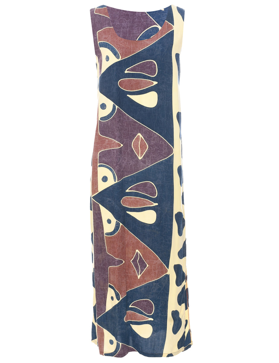 Sleeveless dress in multi-colour with abstract pattern, a round neck.