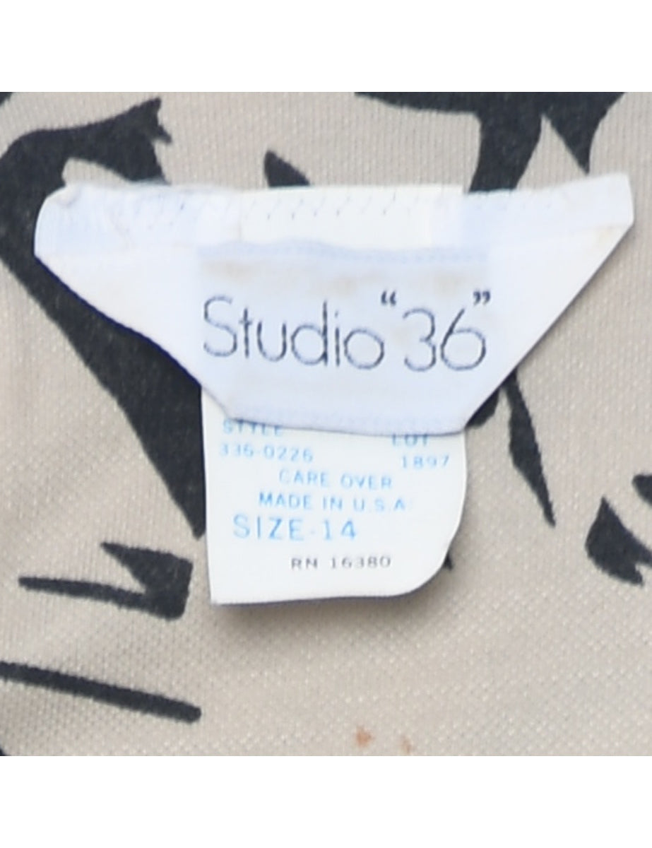 Dress with abstract pattern. Comes in beige with removable shoulder pads and elasticated bust.