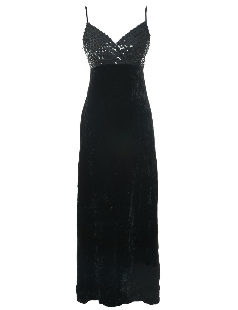 Velvet evening dress in black with sequins.