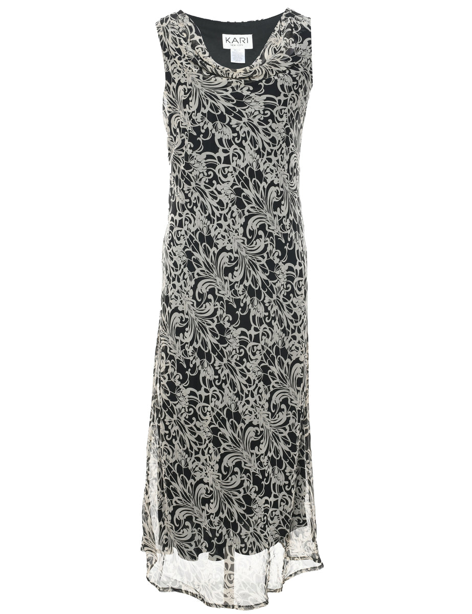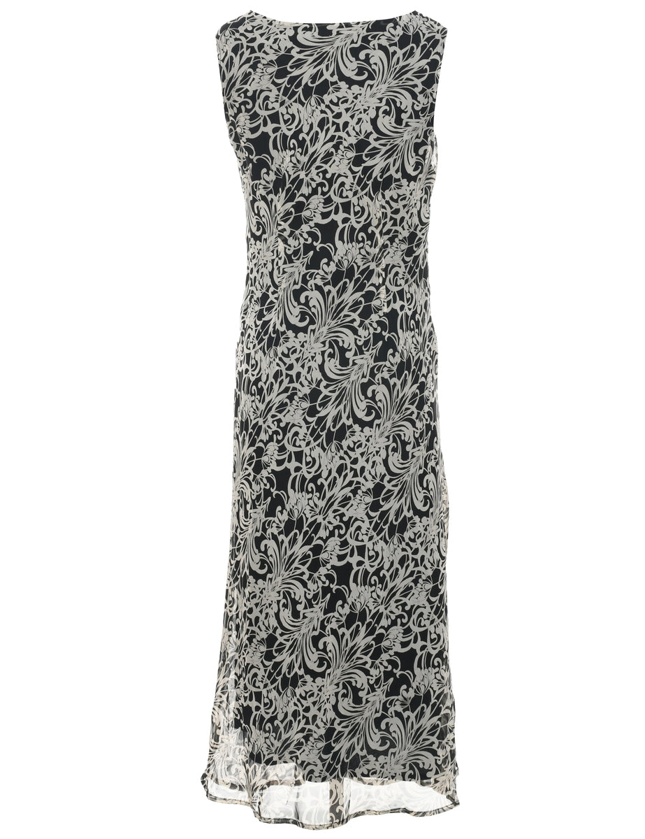 Vintage Black Floral Dress - M
