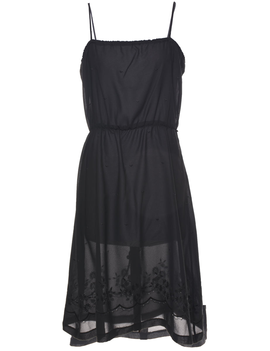Vintage Broderie Anglaise Black Dress - M
