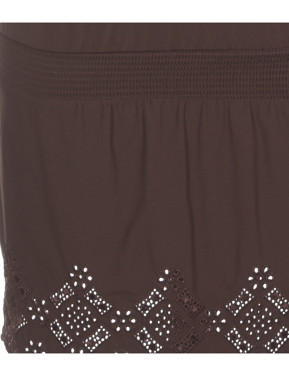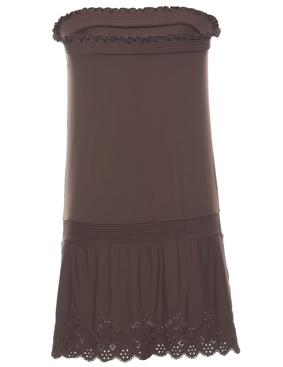 Broderie anglaise brown dress with elasticated bust.