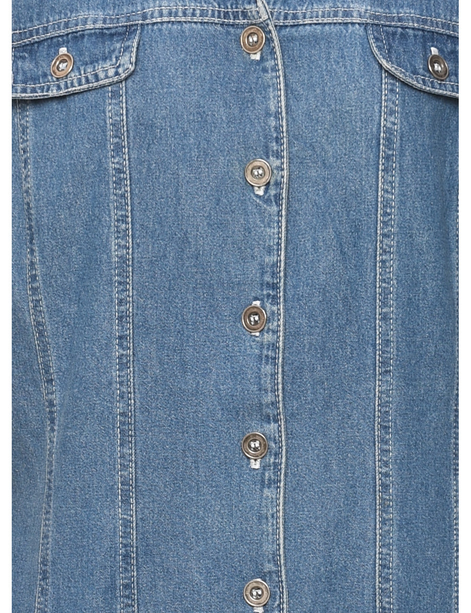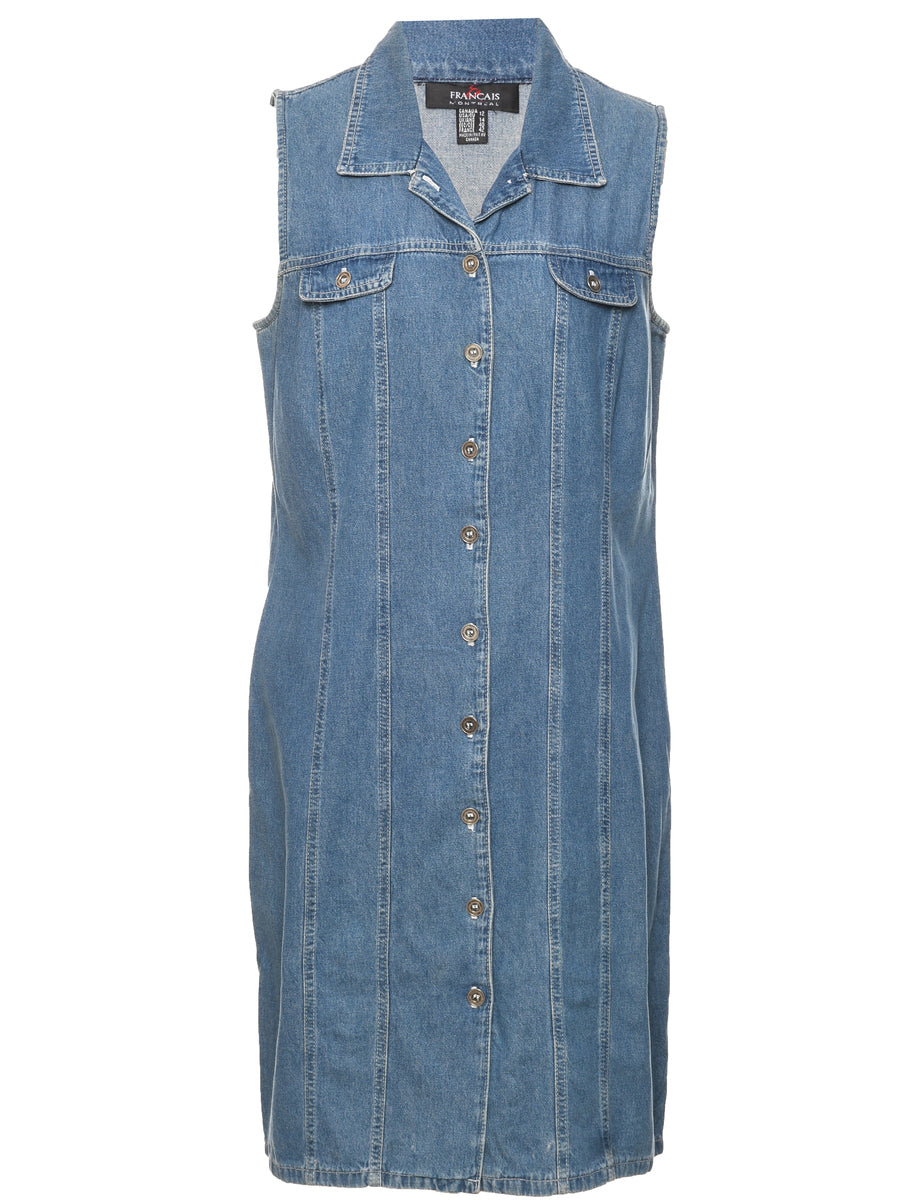 Vintage Button Front Denim Dress - M