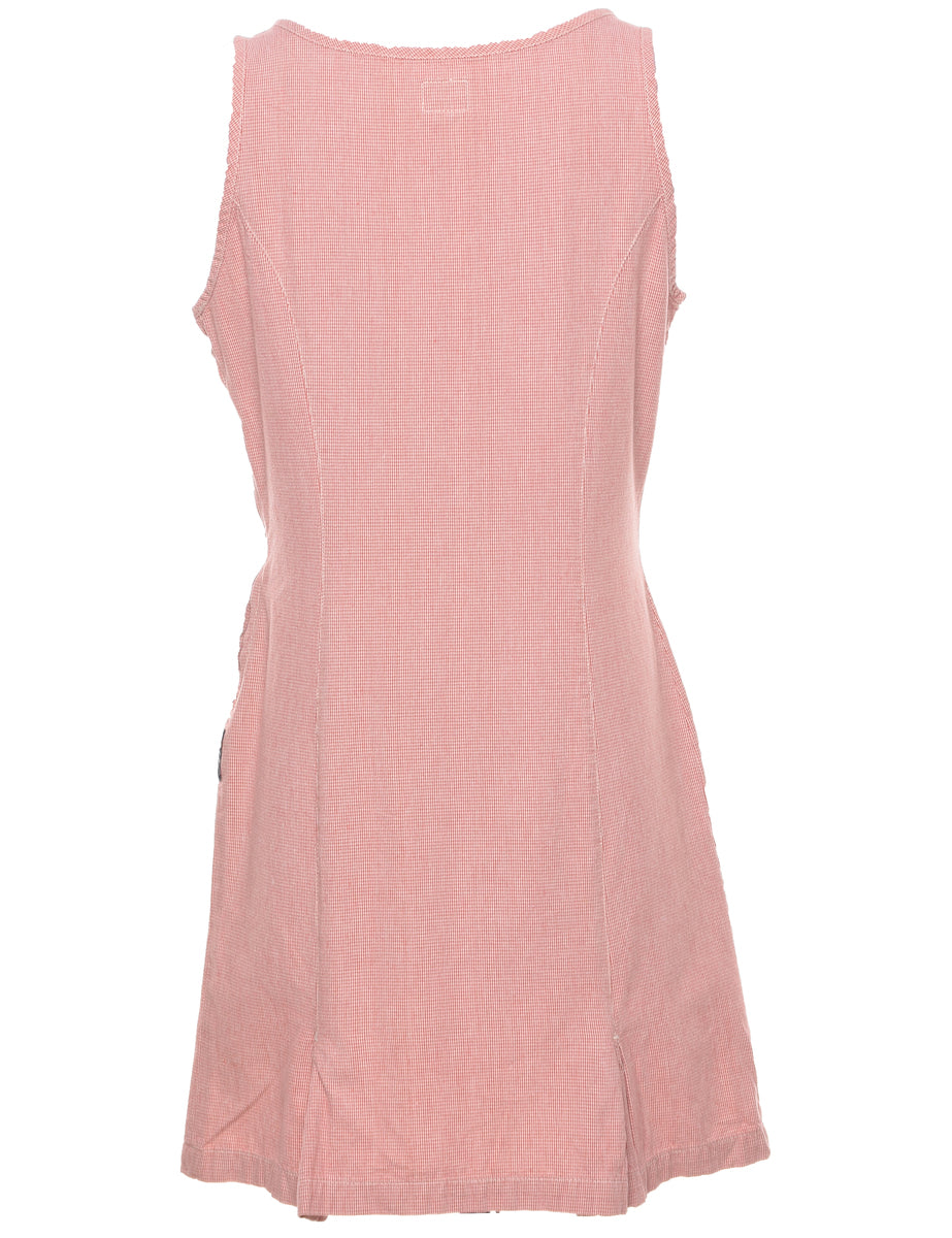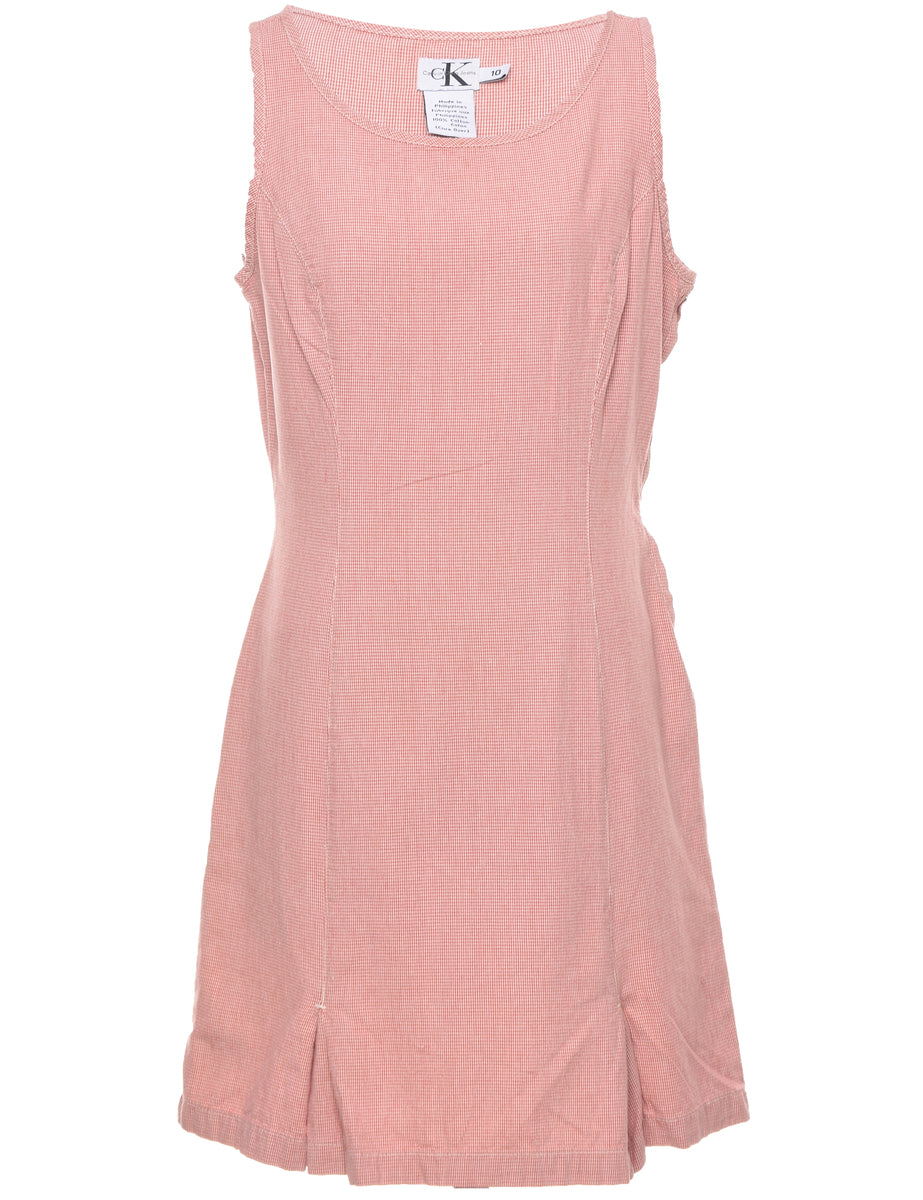 Sleeveless pale pink Calvin Klein dress with dogtooth checks, a round neck.