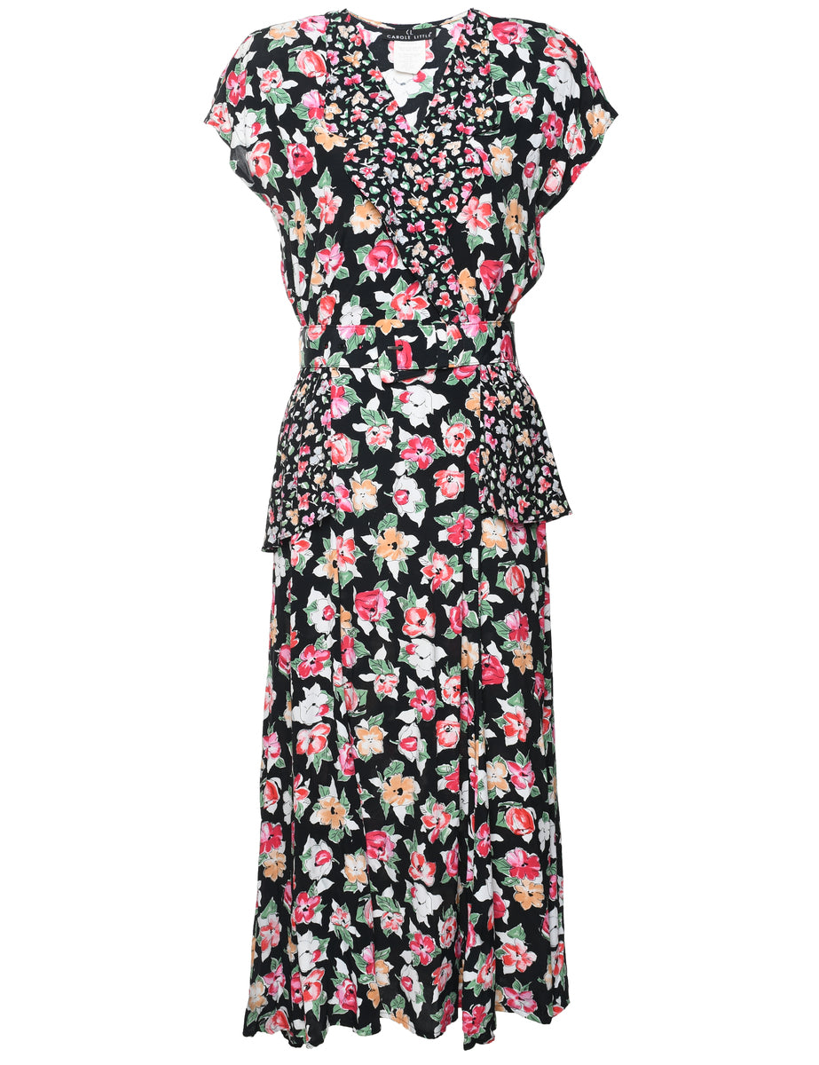 Floral print dress comes in multi-colour with a cross-over front and elastic waist.