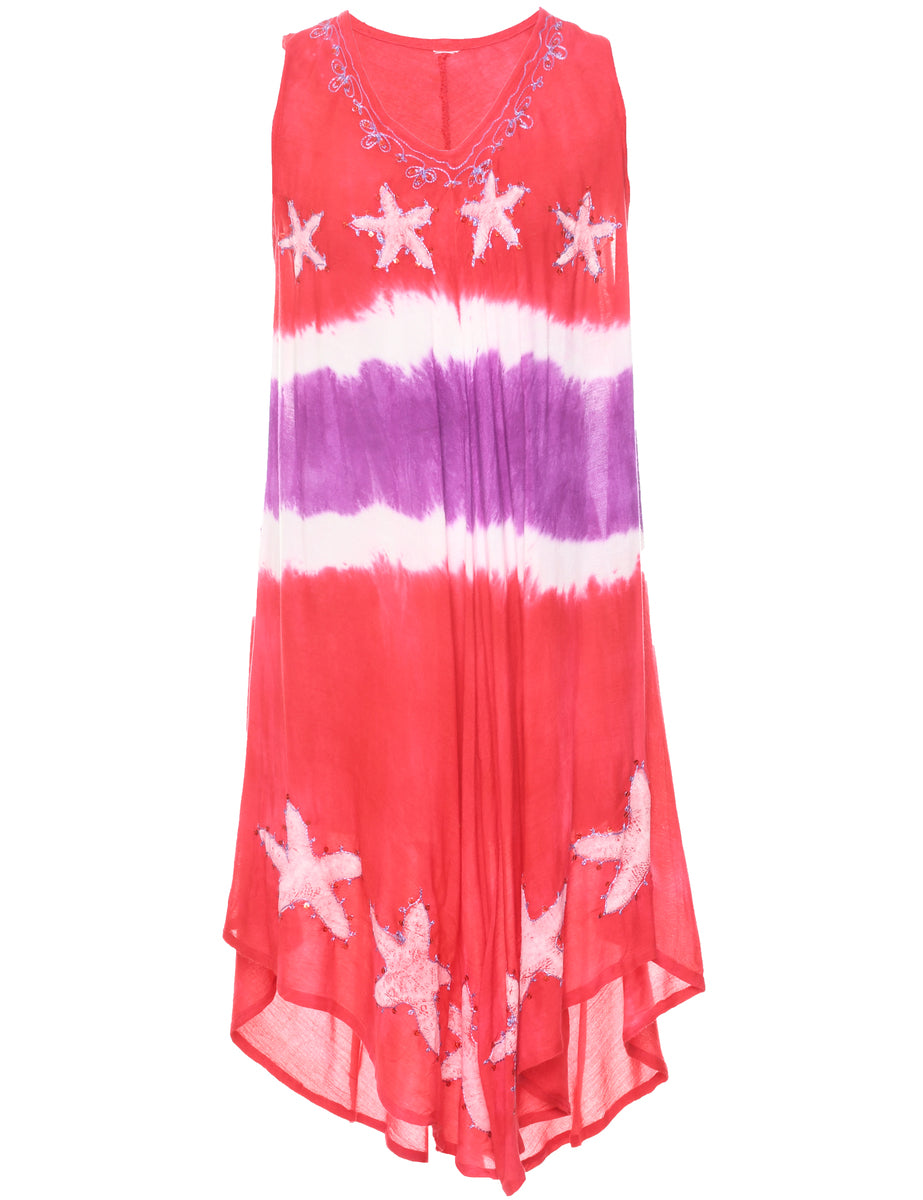 Embroidered dress comes in multi-colour with tie-dye effect, sequins and v neck.