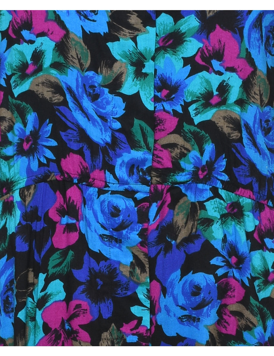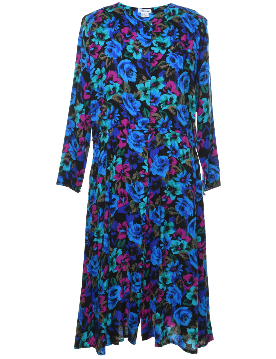 Button front dress with floral pattern. Comes in multi-colour with multiple pockets and removable shoulder pads.