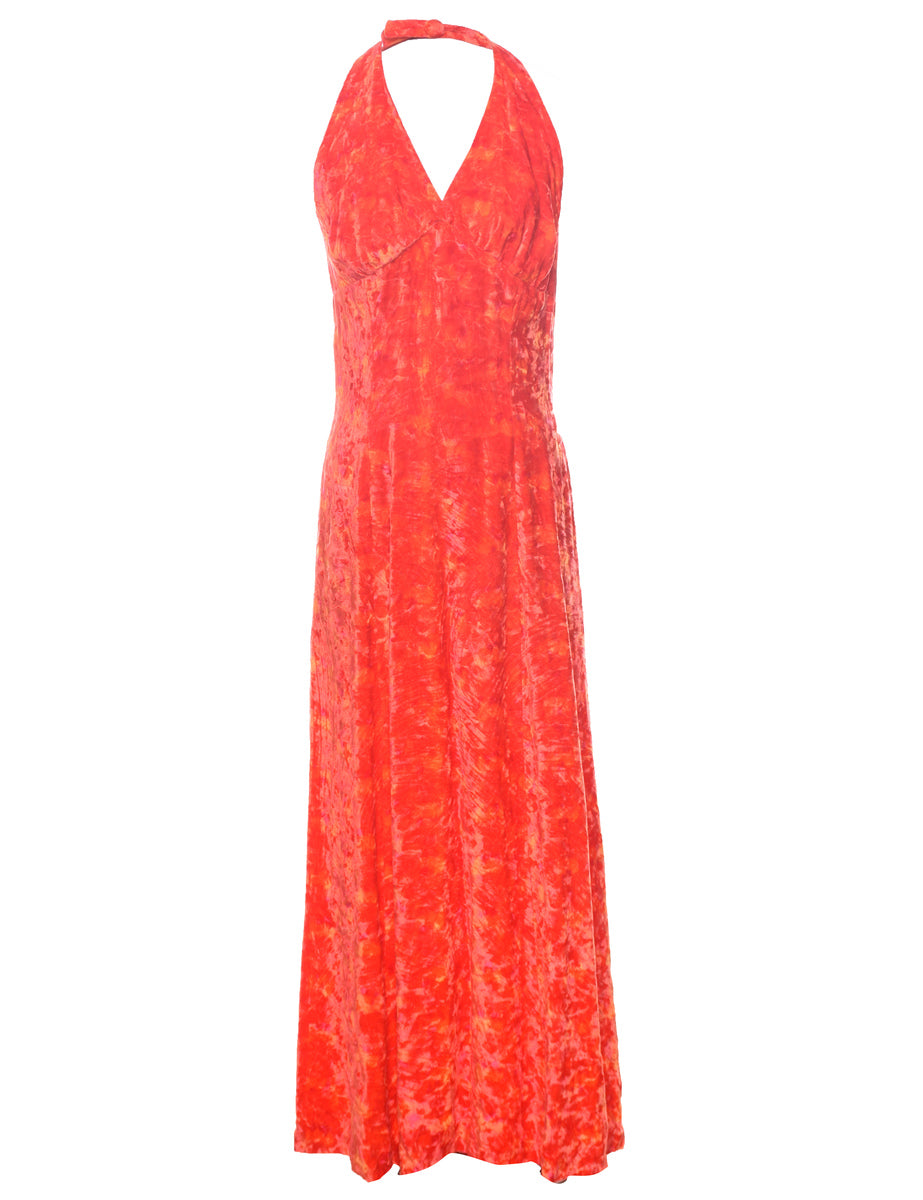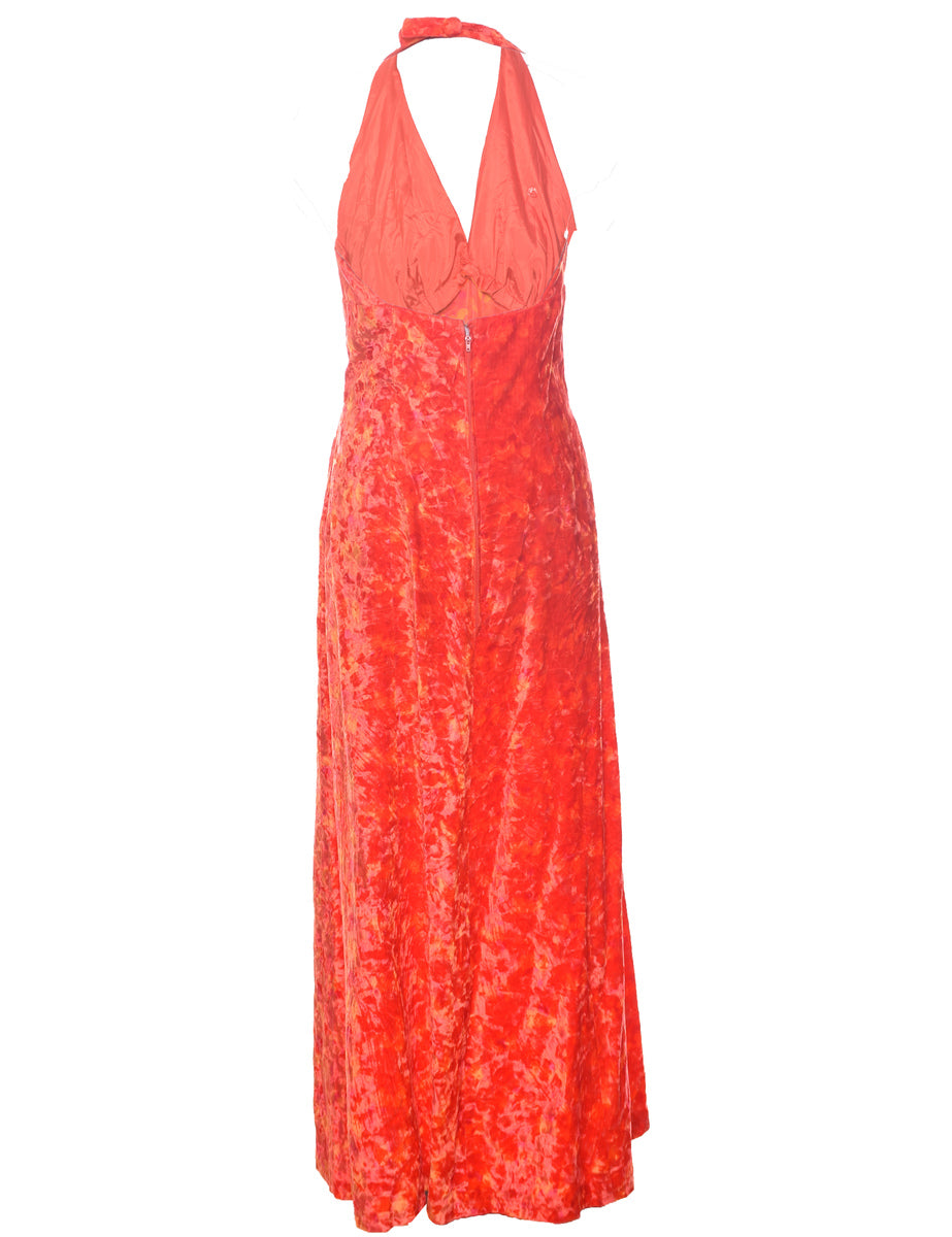 Velvet evening dress with floral pattern. Comes in orange with halter.