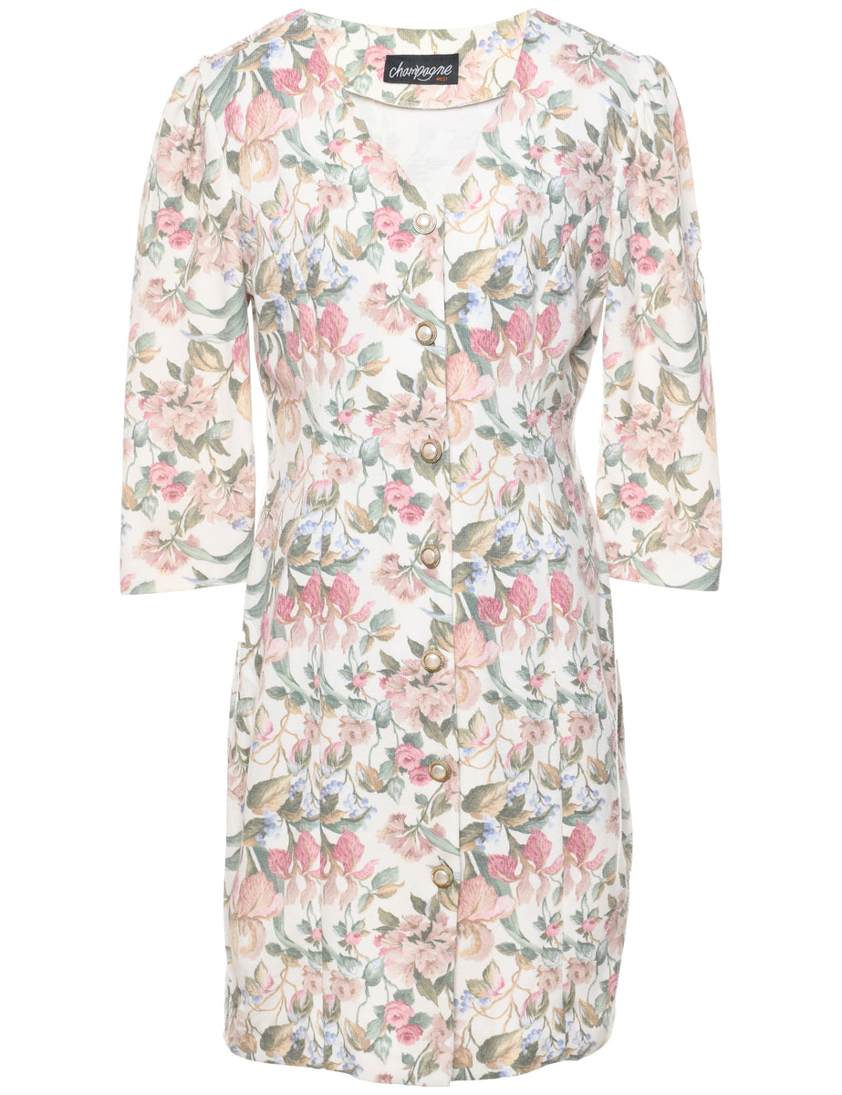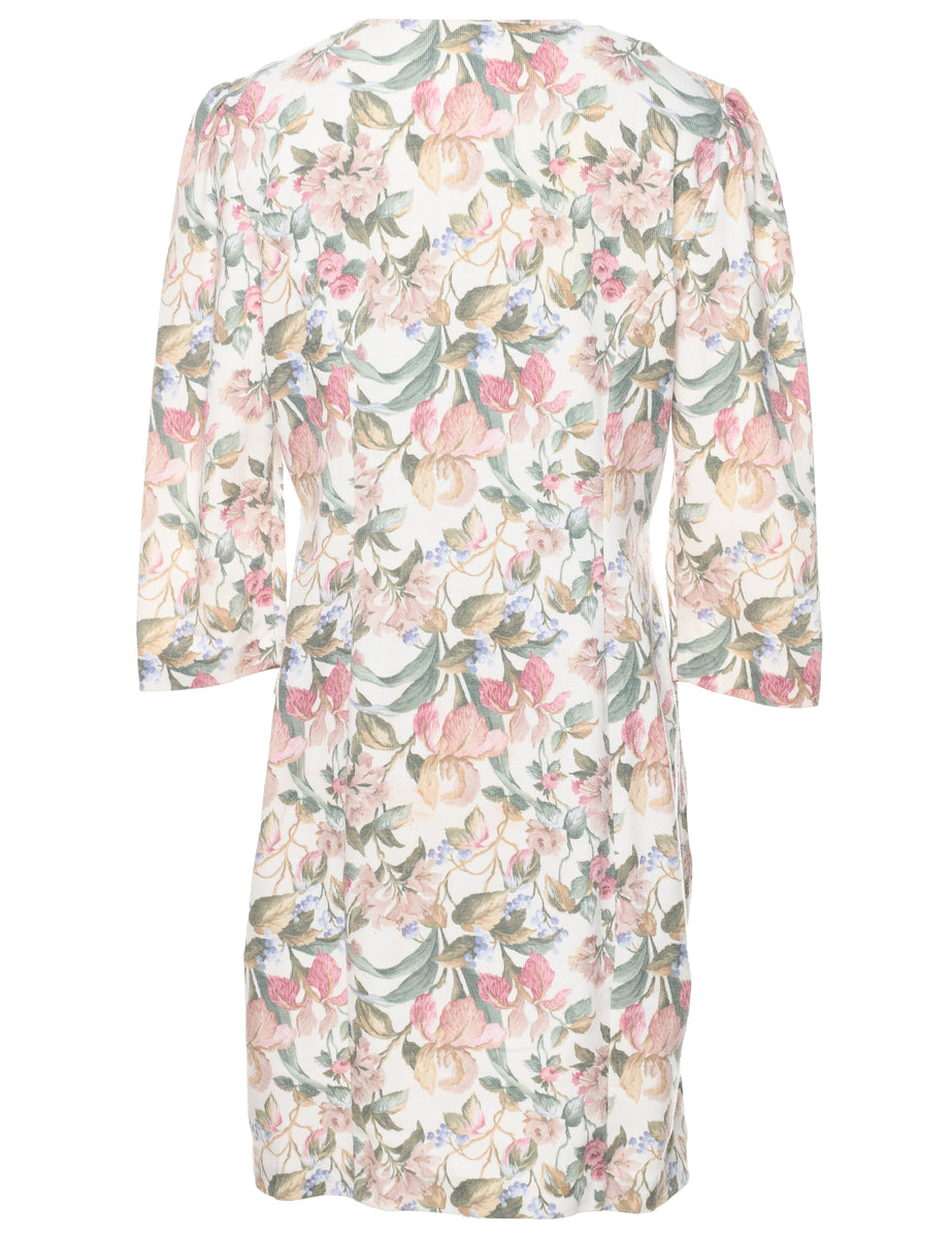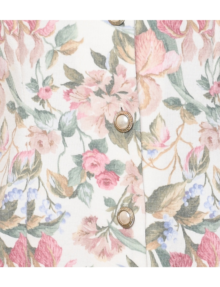 Floral print dress in multi-colour with corduroy fabric, puff sleeves.