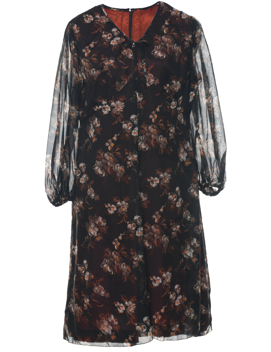 Vintage Floral Print Dress - L
