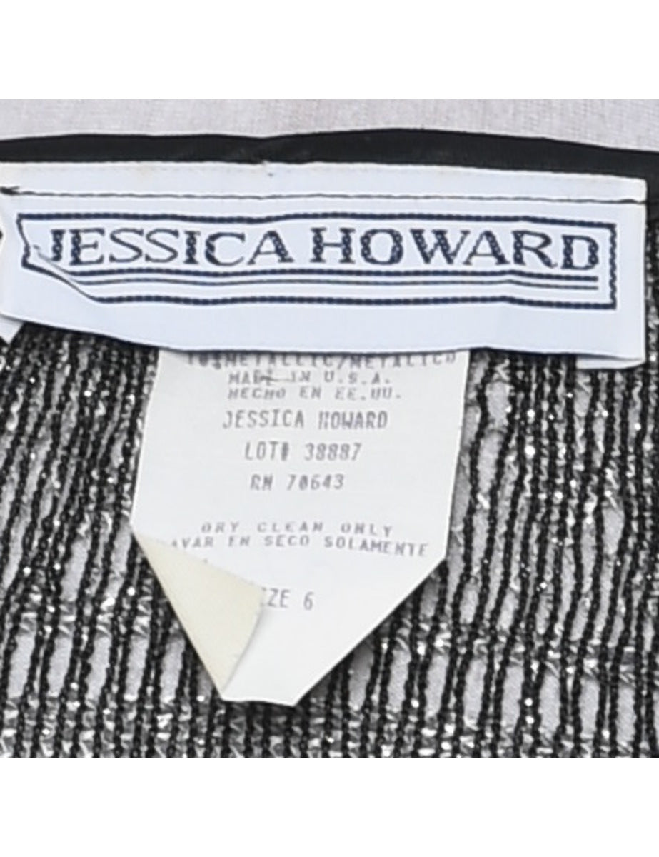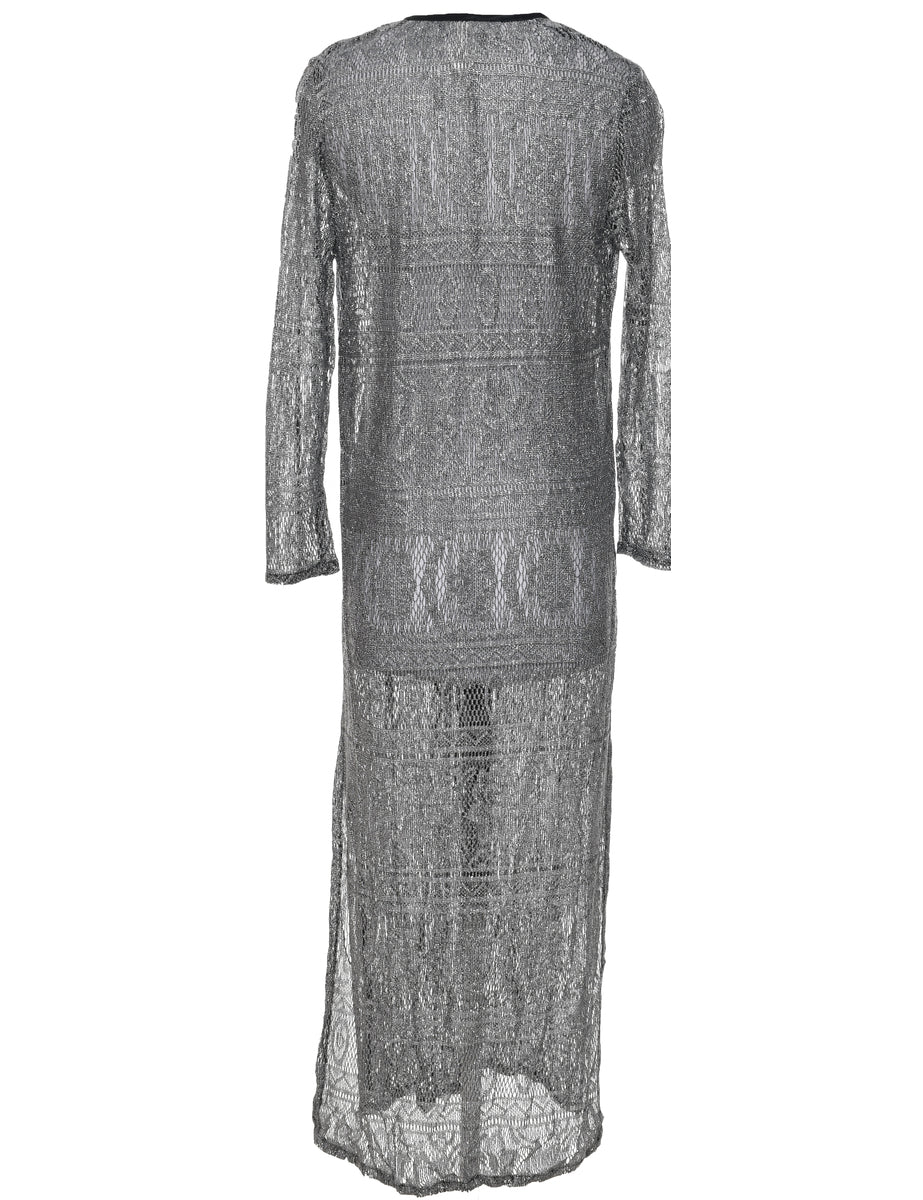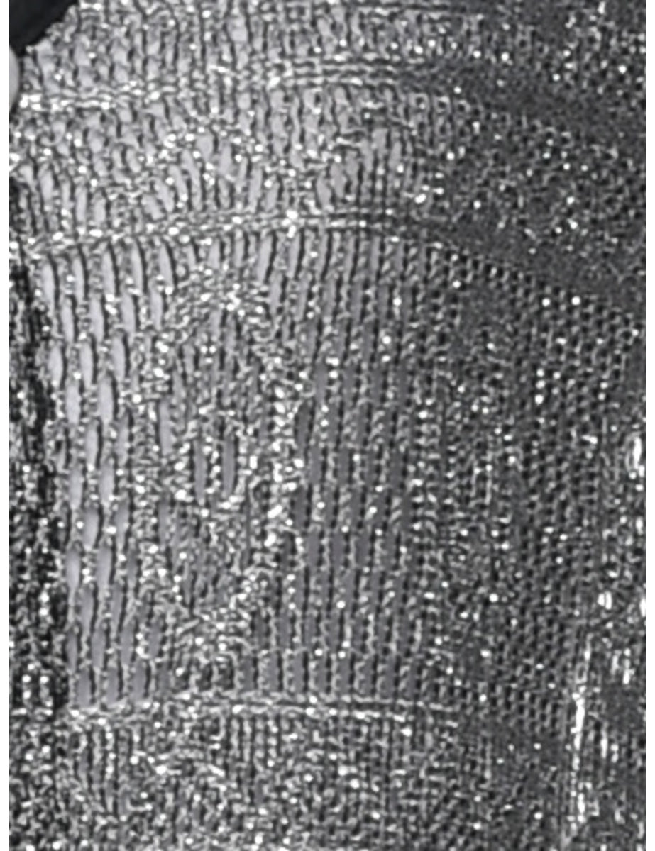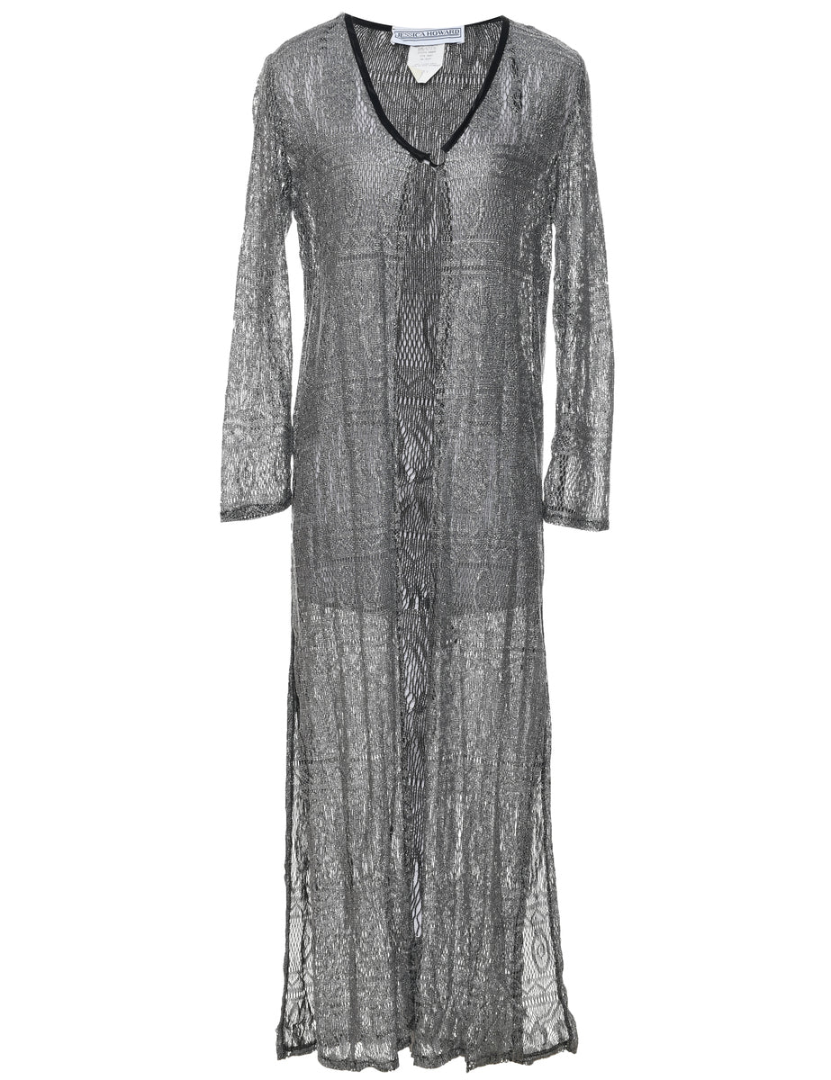 Sheer evening dress. Comes in silver with lurex thread pattern, v neck.