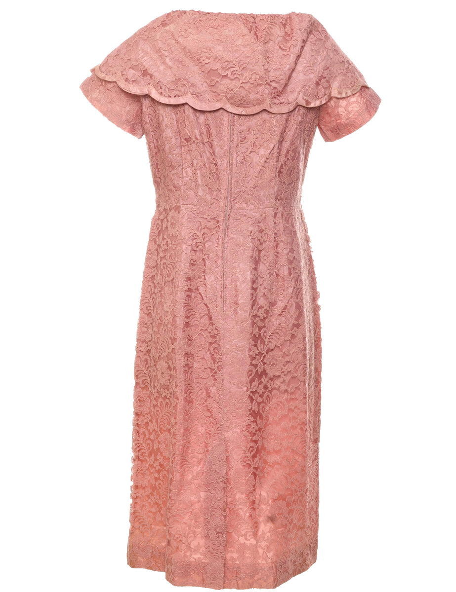 Lace dress. Comes in pale pink with frills and a sculptured flower.