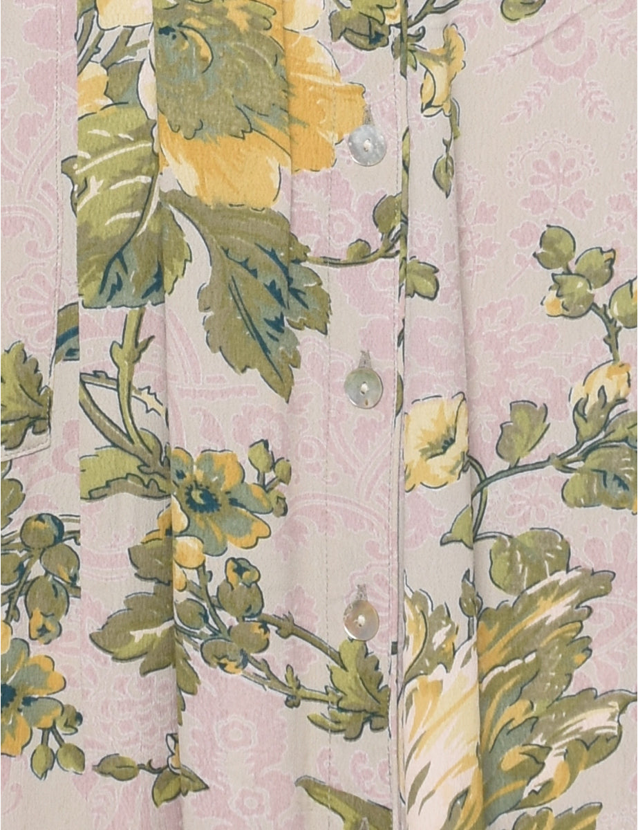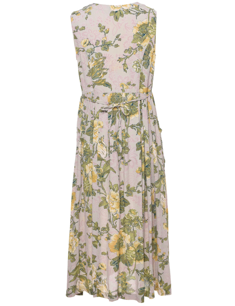 Vintage Leafy Print Dress - M