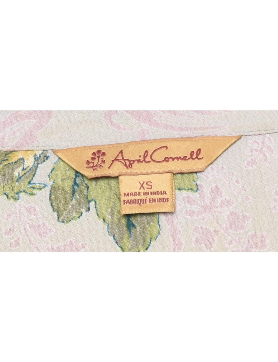 Leafy print dress in multi-colour with back tie and ruched detailing.The size label mentions XS but based on the actual measurements we consider it a size M.