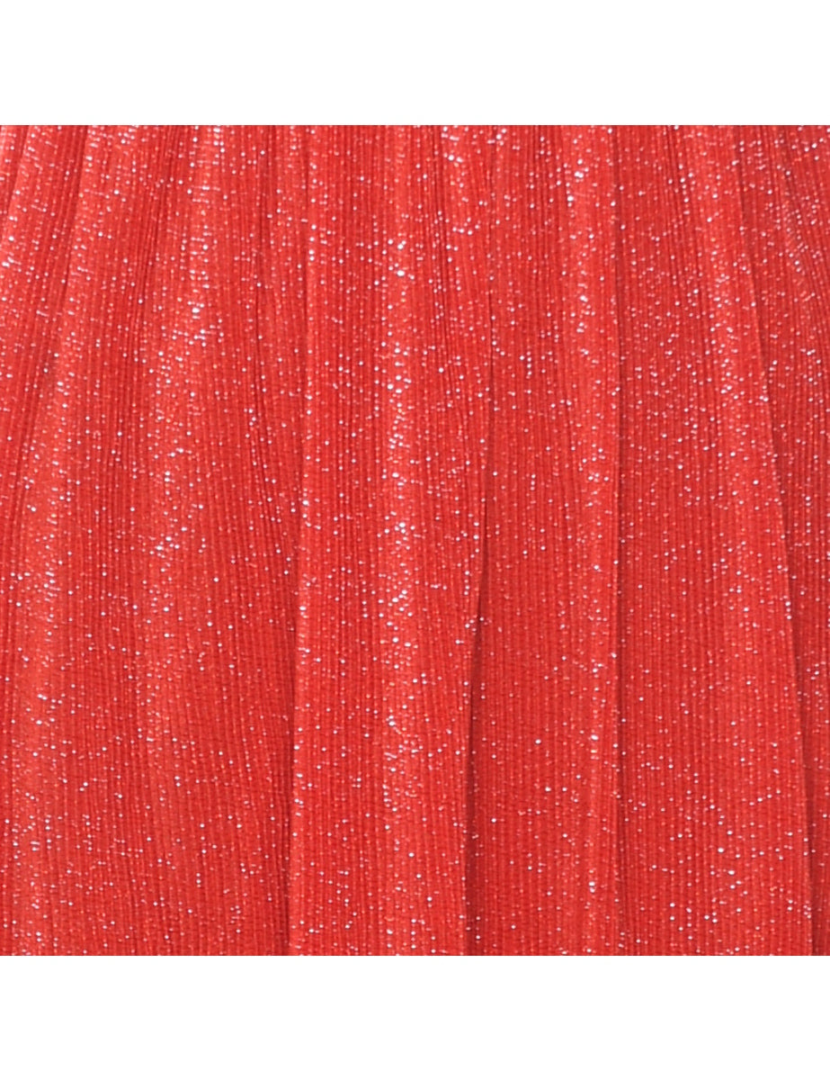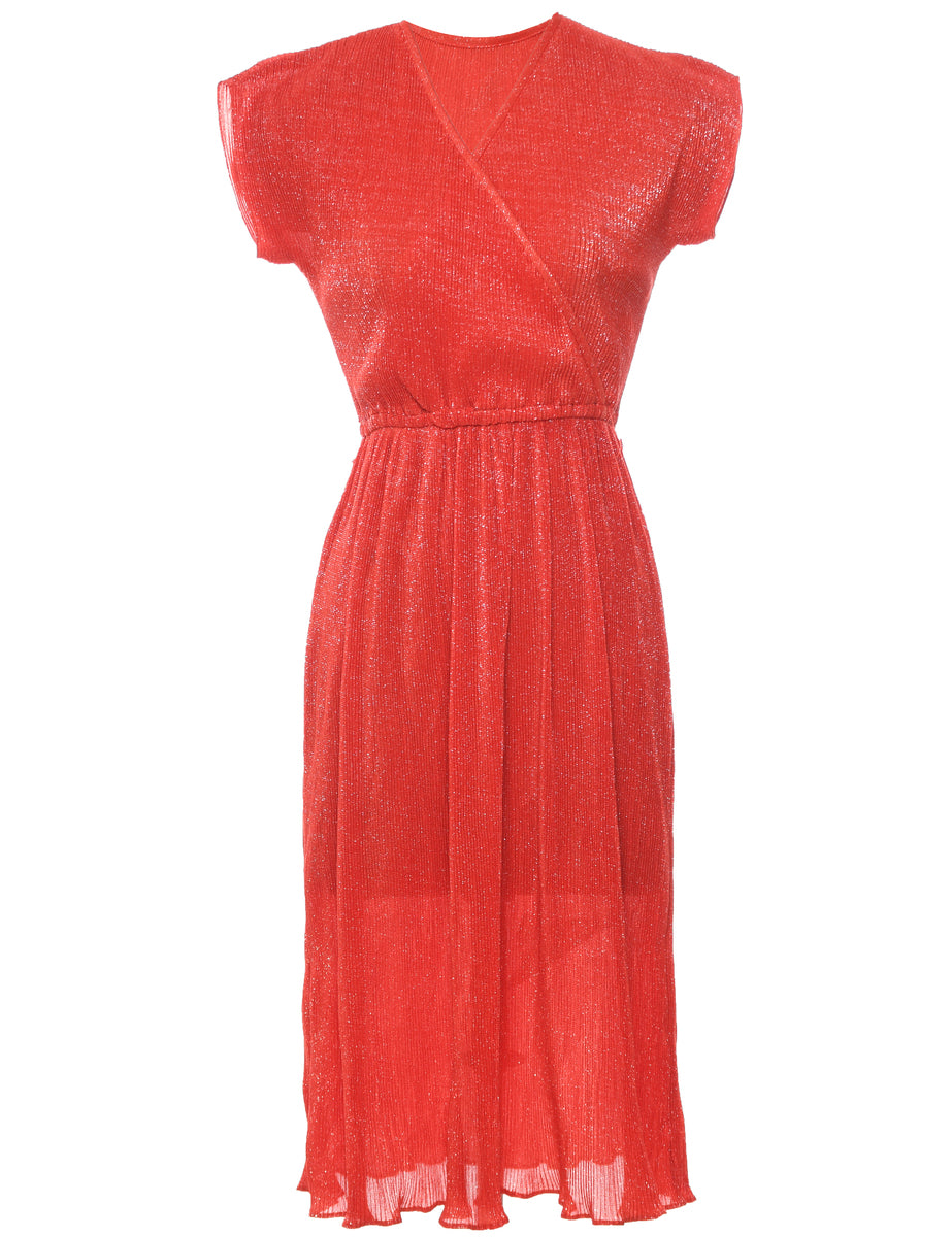 Lurex thread red sparkly evening dress complete with a cross-over front and batwing sleeves.