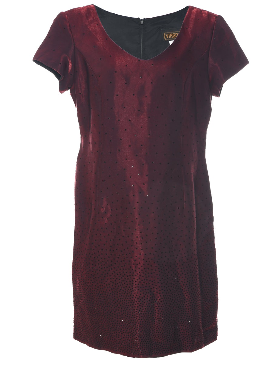 Classic party dress. Comes in maroon with removable shoulder pads.