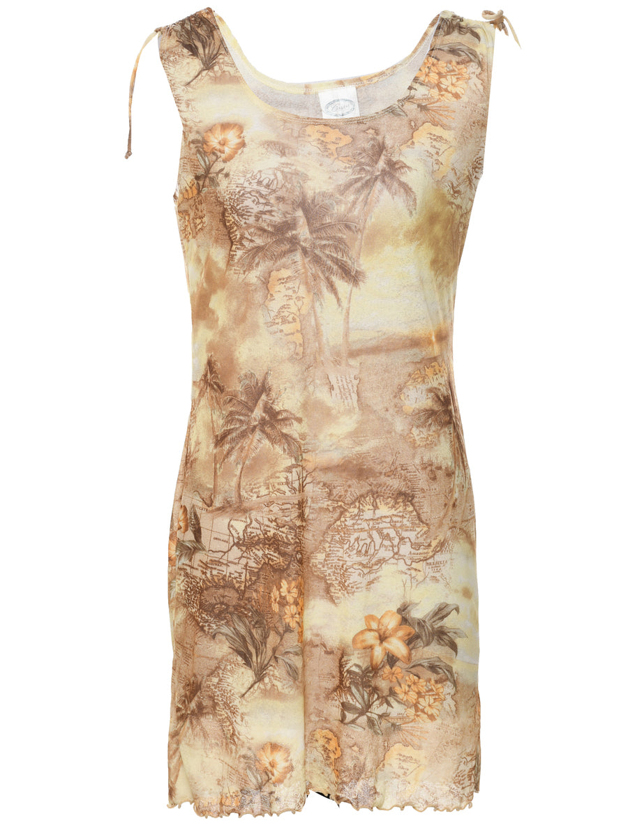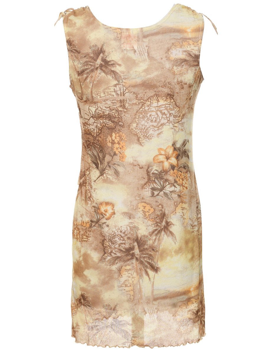 Sheer mini dress in multi-colour with hawaiian print, a round neck.
