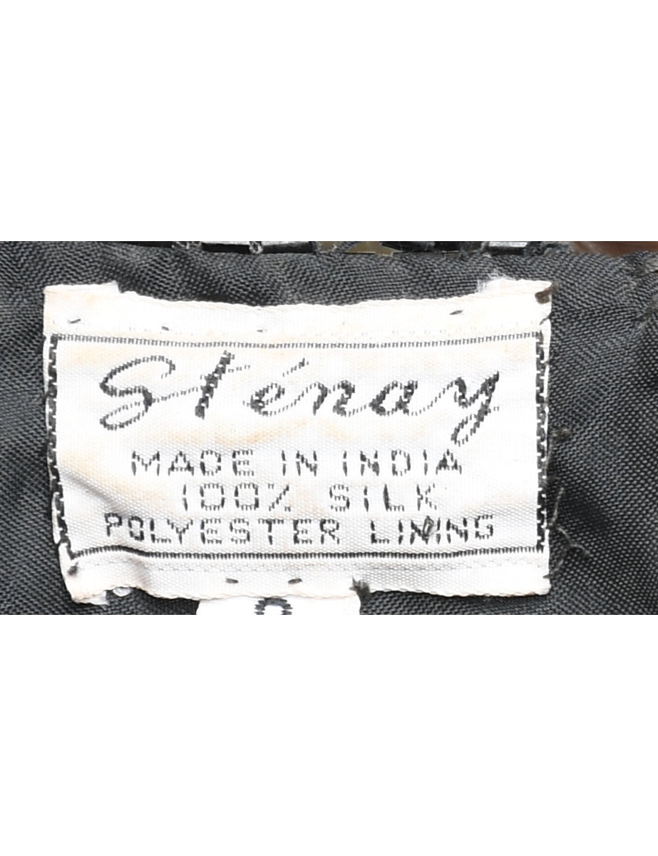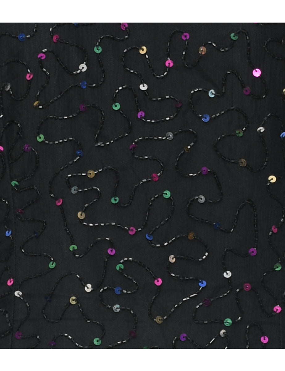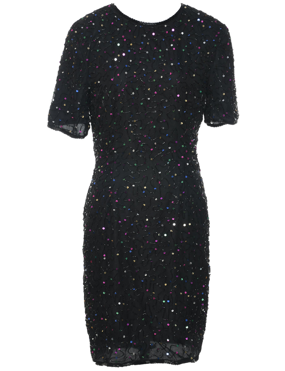 Vintage Silk Black Beaded Party Dress - M
