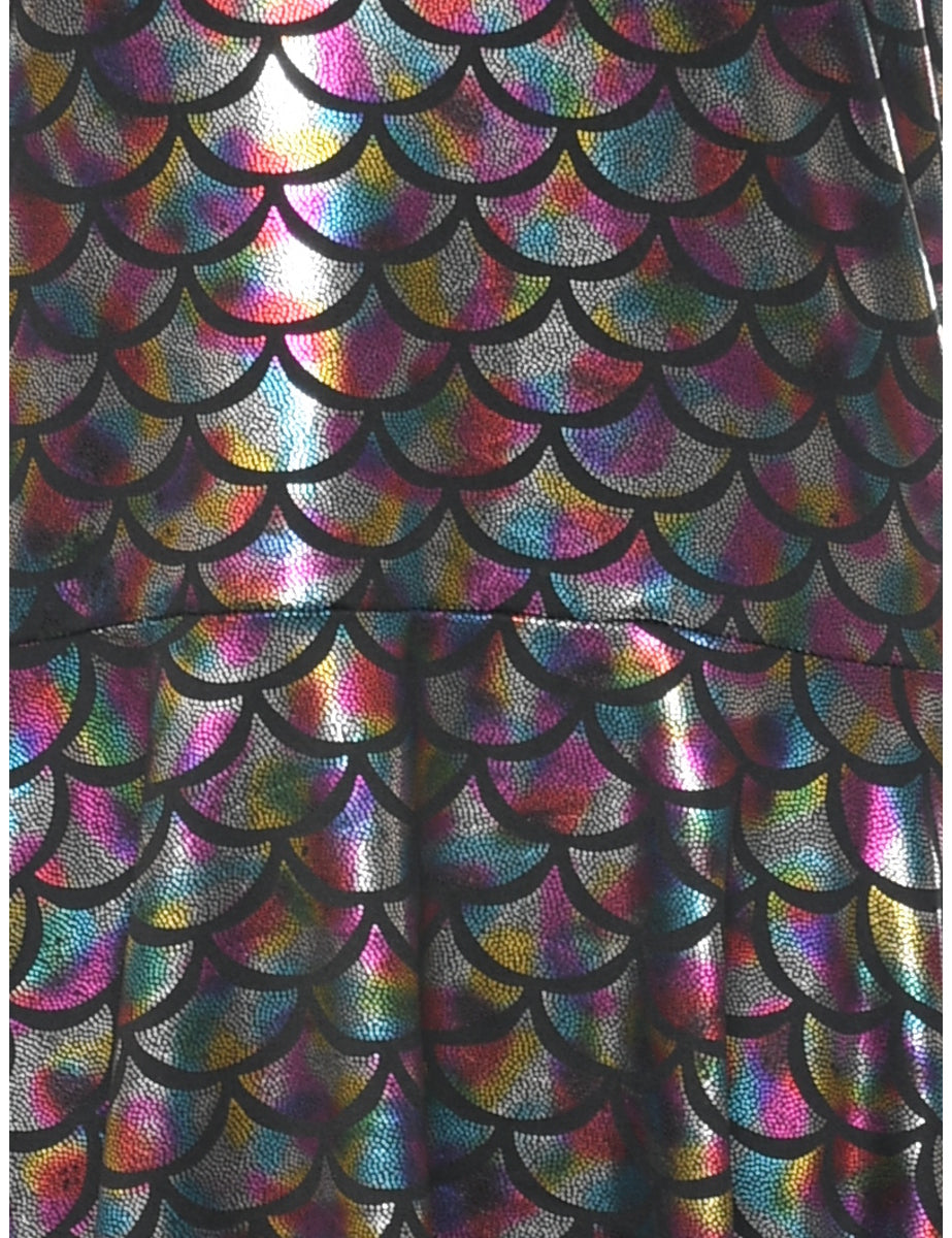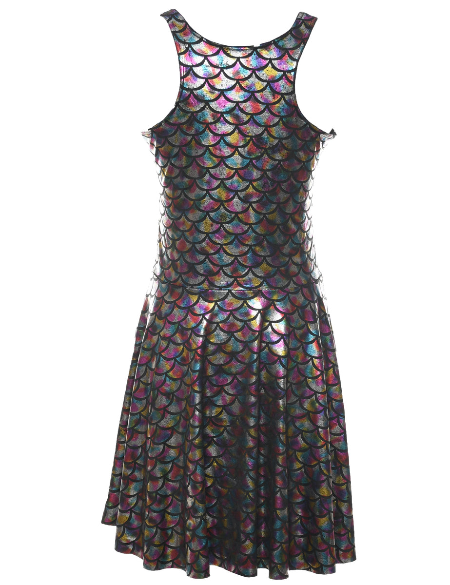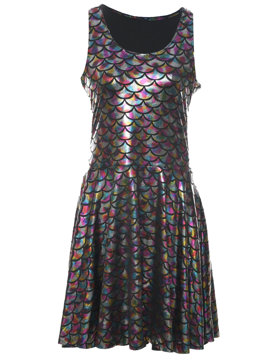 Sleeveless evening dress comes in multi-colour with a round neck.