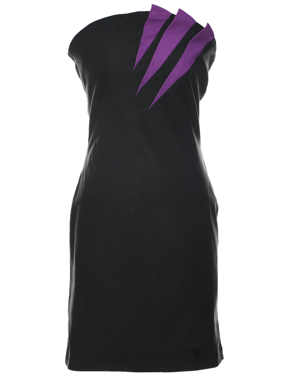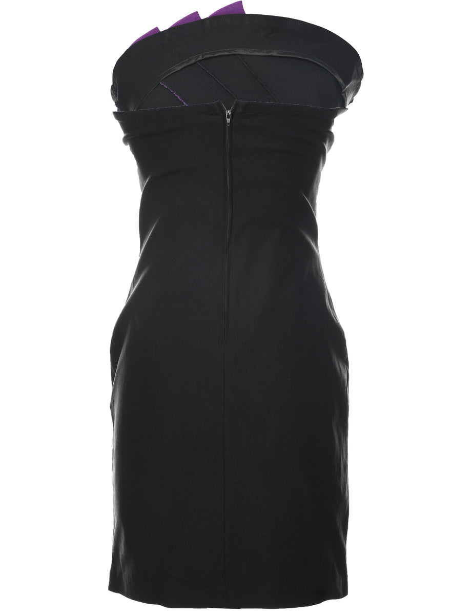 Strapless evening dress. Comes in black with pin tucks and elasticated bust.