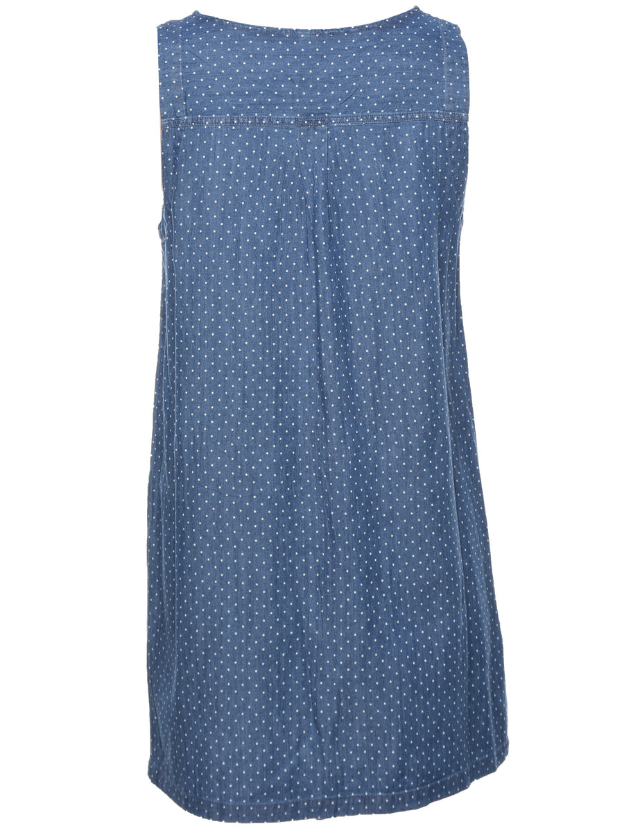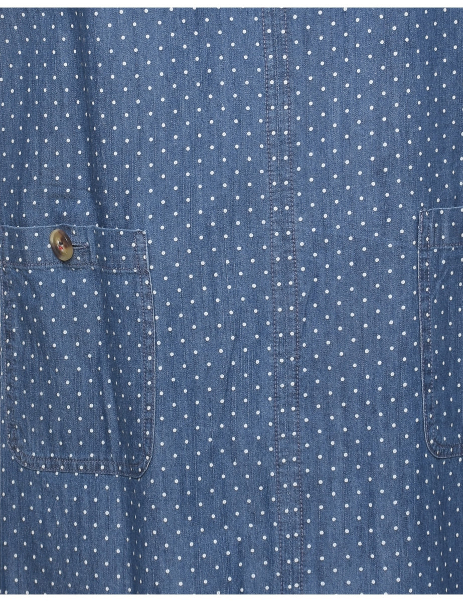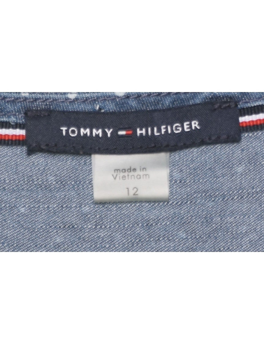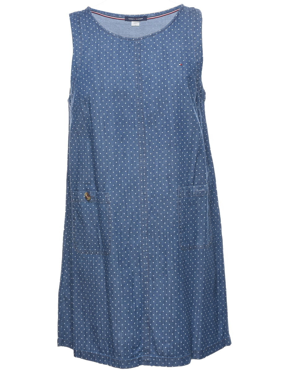 Tommy Hilfiger polka dot denim dress in light wash with an a-line skirt.