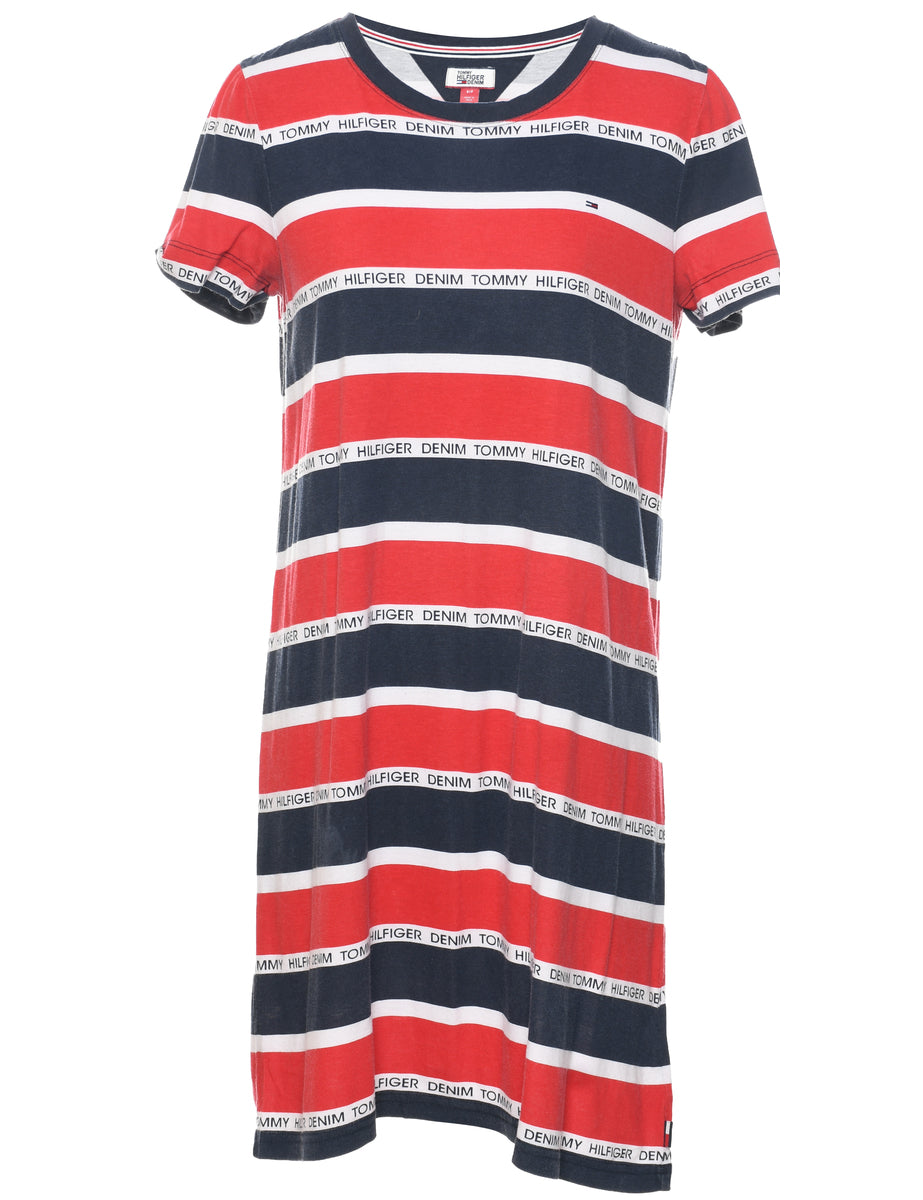 Tommy Hilfiger striped dress in navy & white with a round neck.