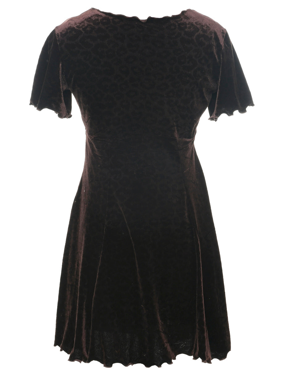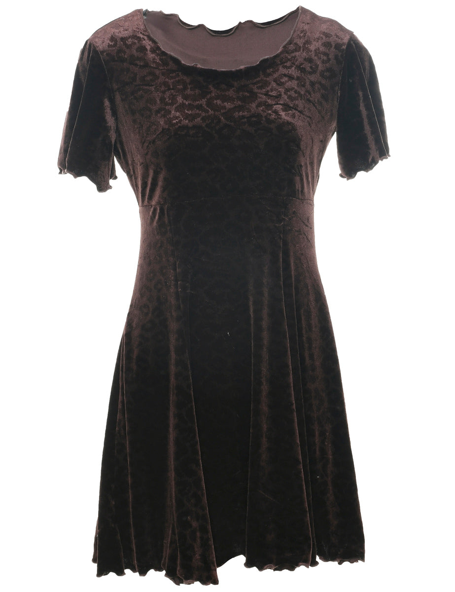 Midi length evening dress. Comes in dark brown with a scalloped hem.