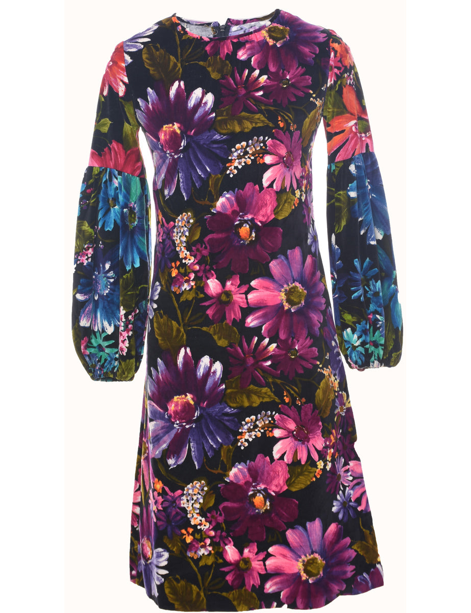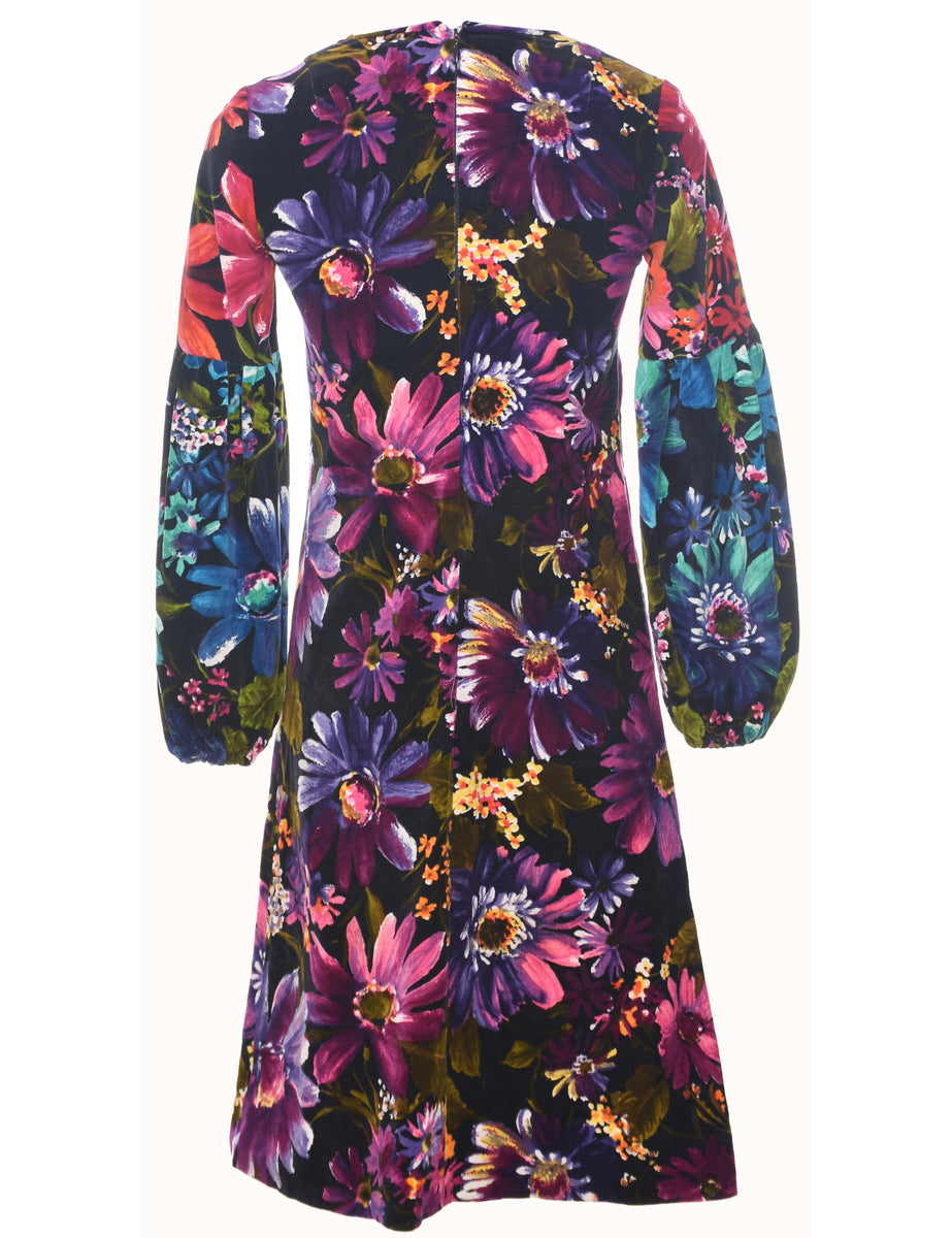 Velvet evening dress. Comes in multi-colour with floral pattern.