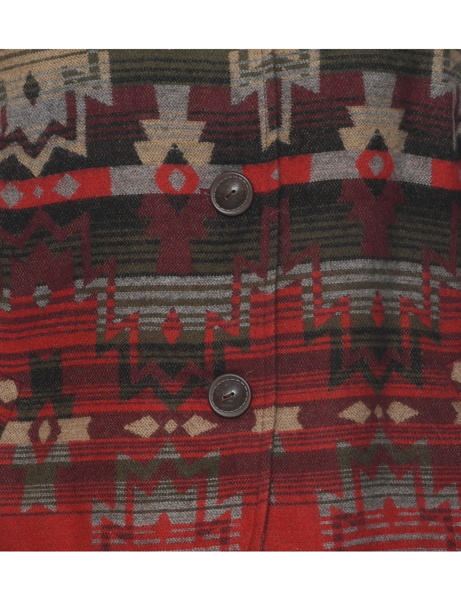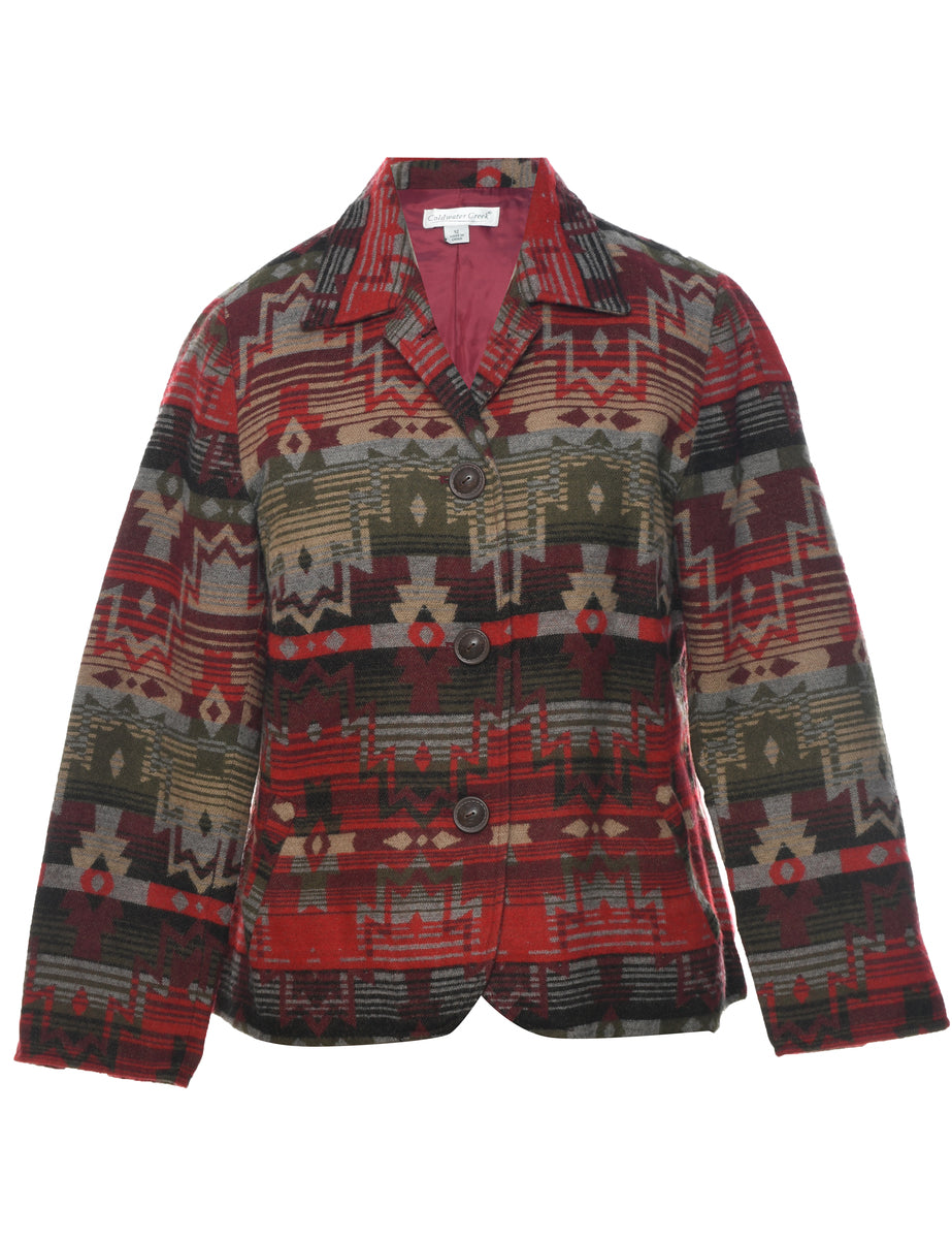 Aztec print blazer comes in multi-colour with multiple pockets and shoulder pads.