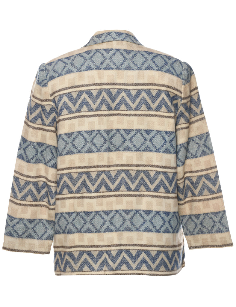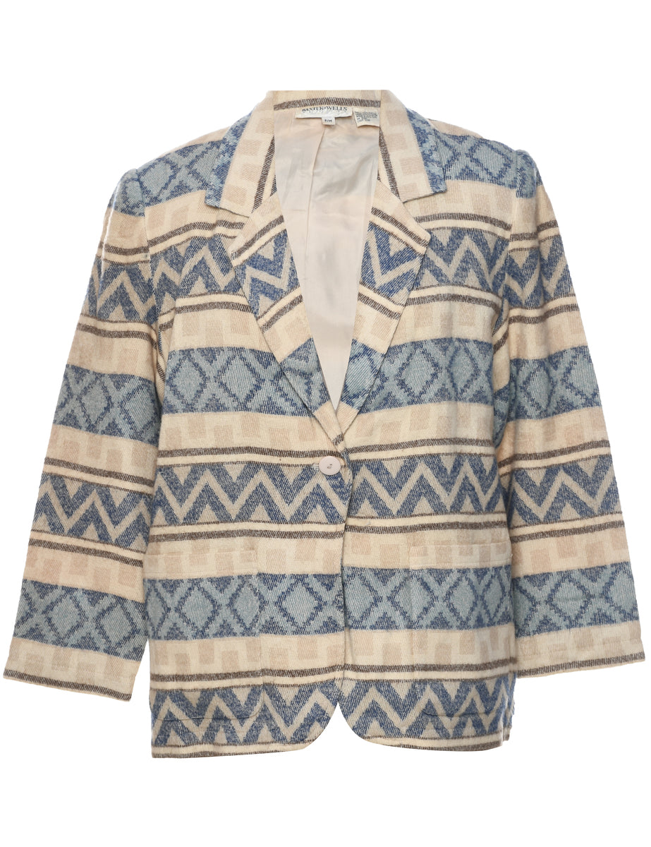 Aztec print blazer in multi-colour with multiple pockets and shoulder pads.
