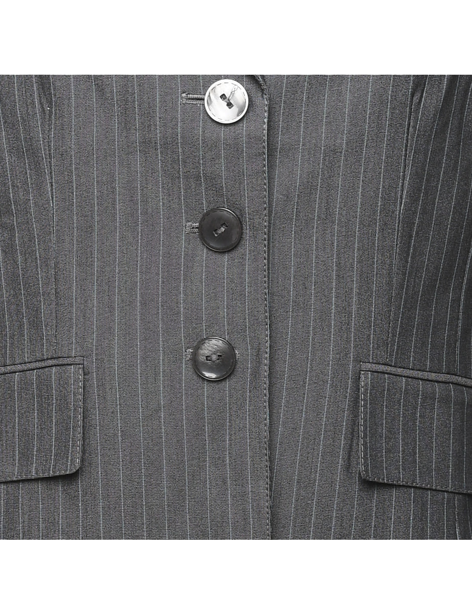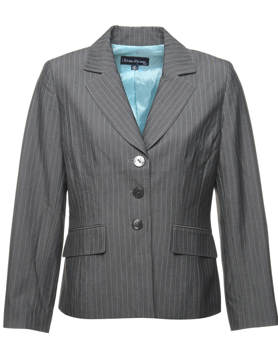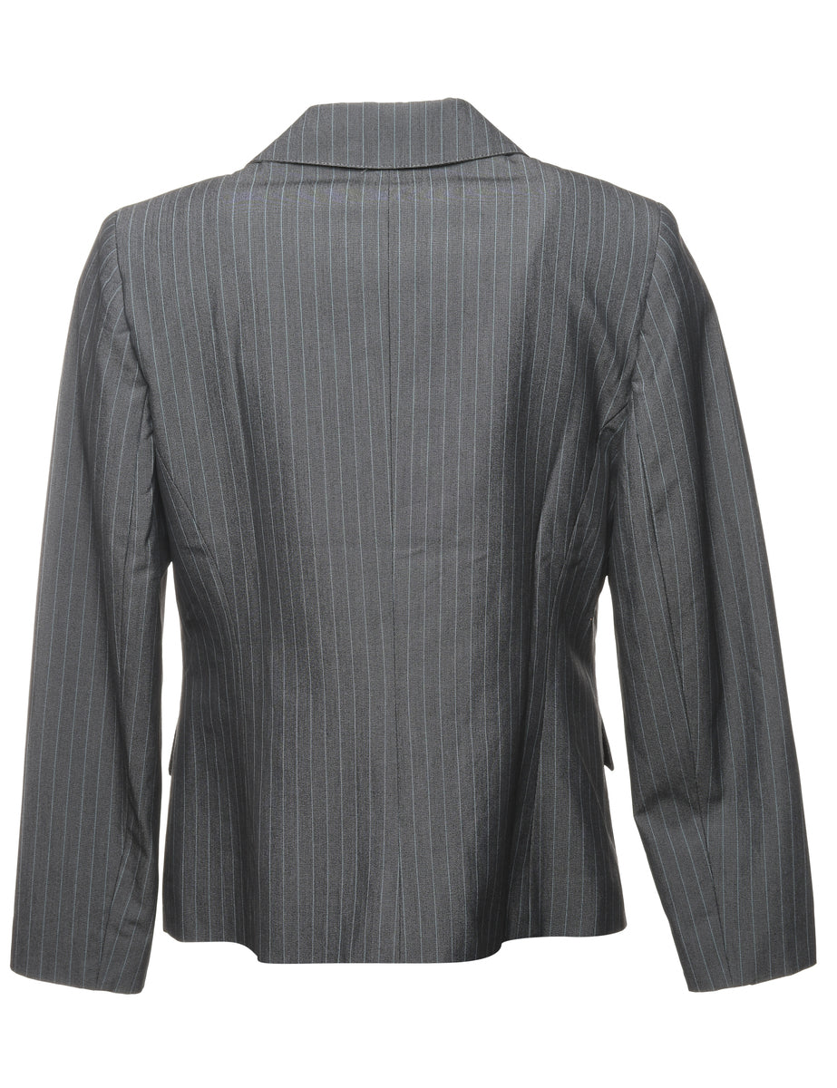 Striped dark grey blazer with full lining and built in shoulder pads.