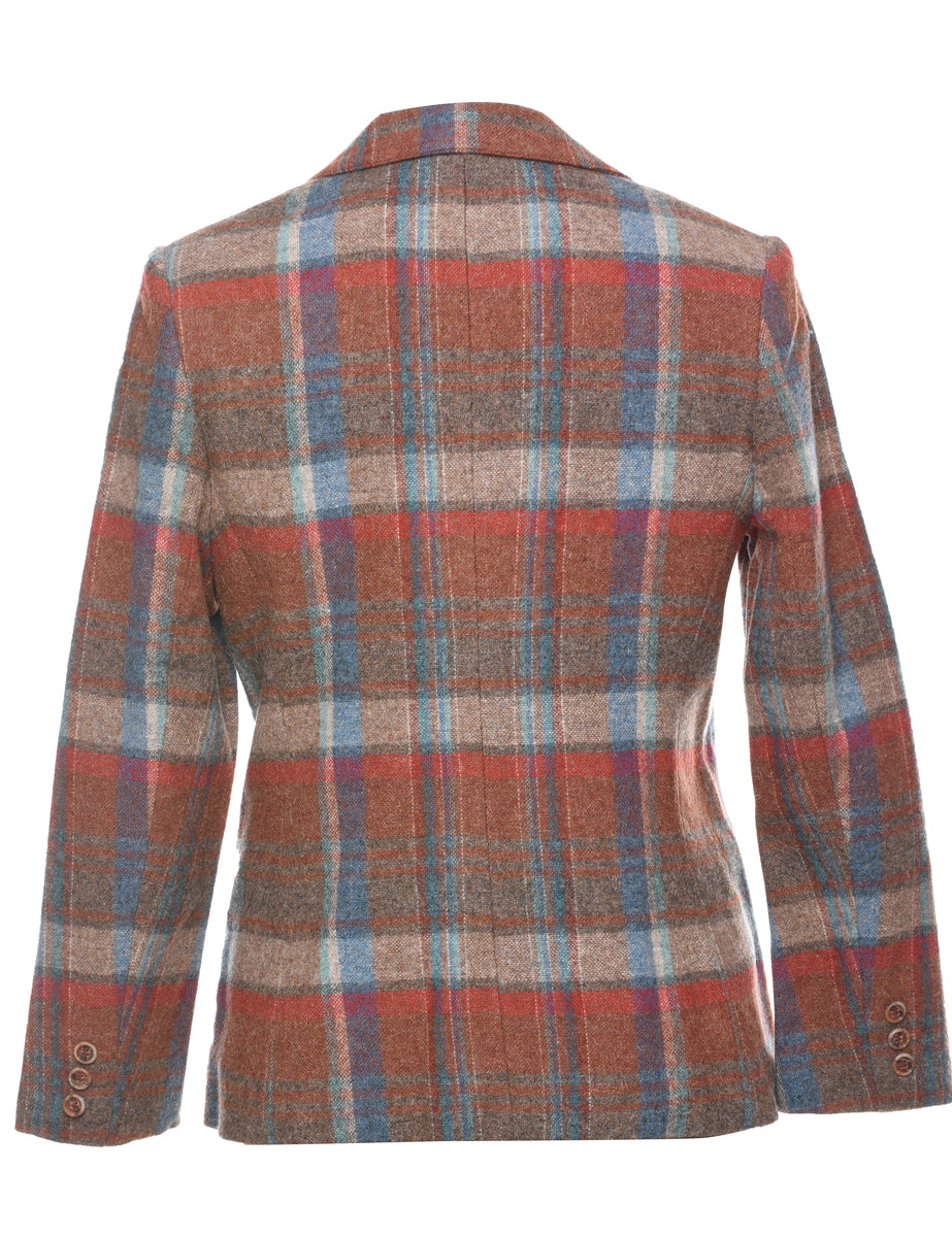 Checked multi-colour blazer with multiple pockets and shoulder pads.