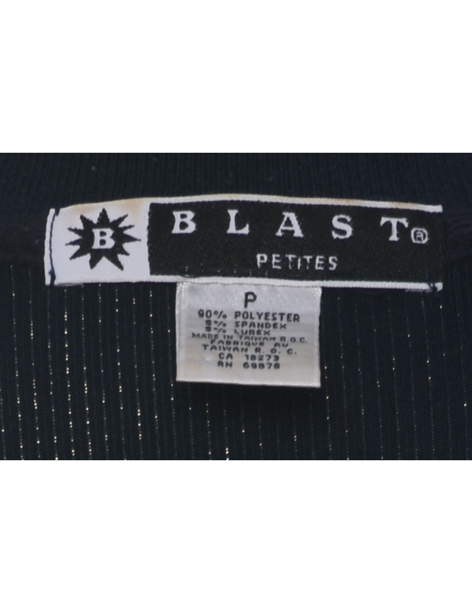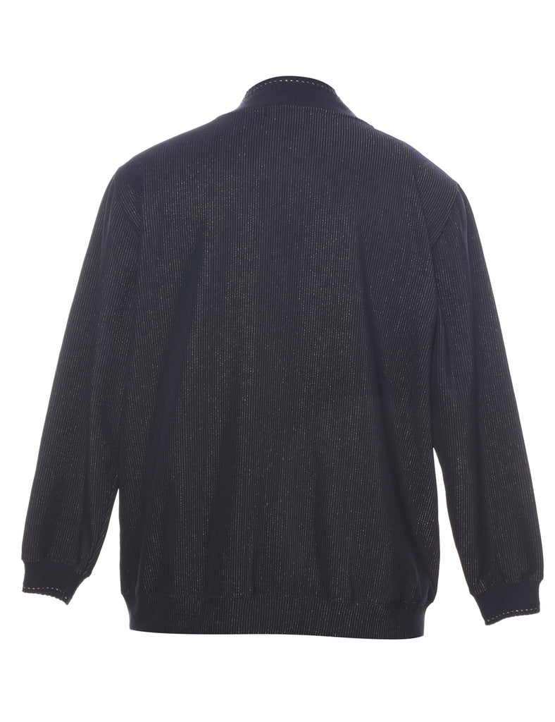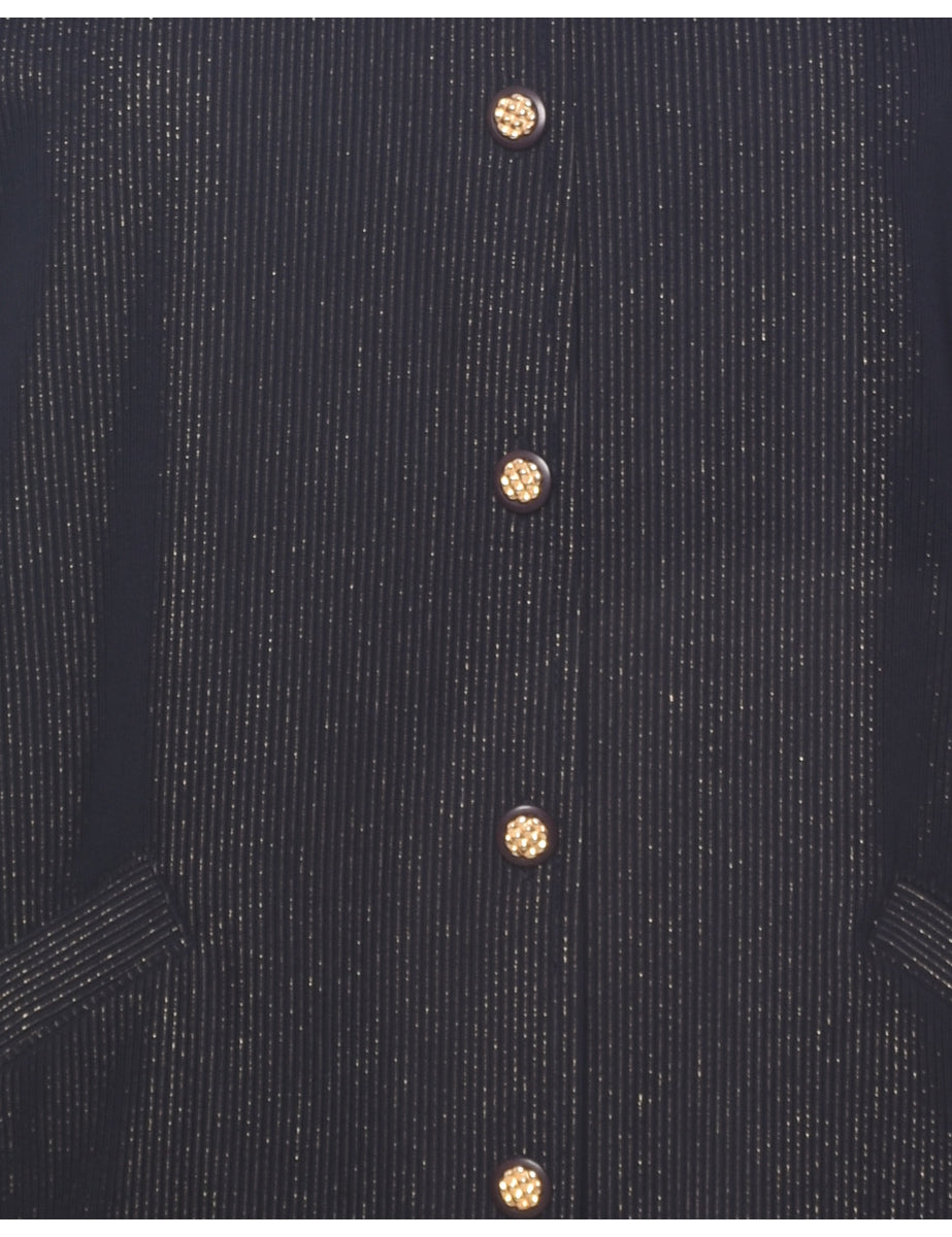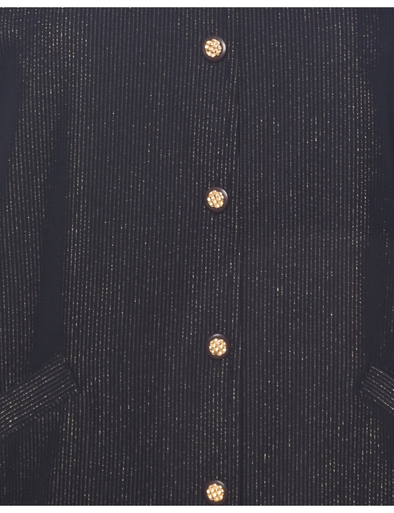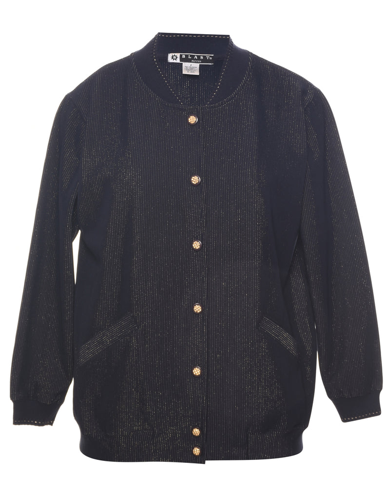 Lurex thread bomber jacket with striped pattern comes in navy with multiple pockets.