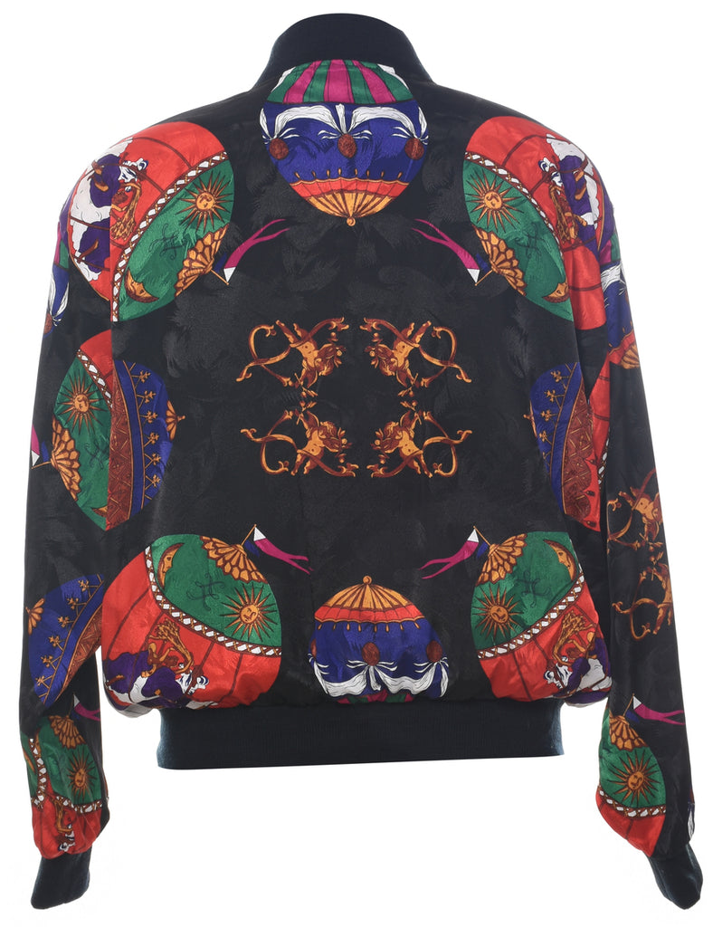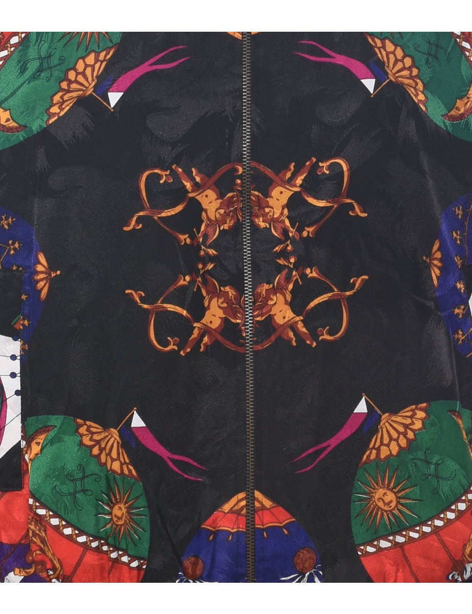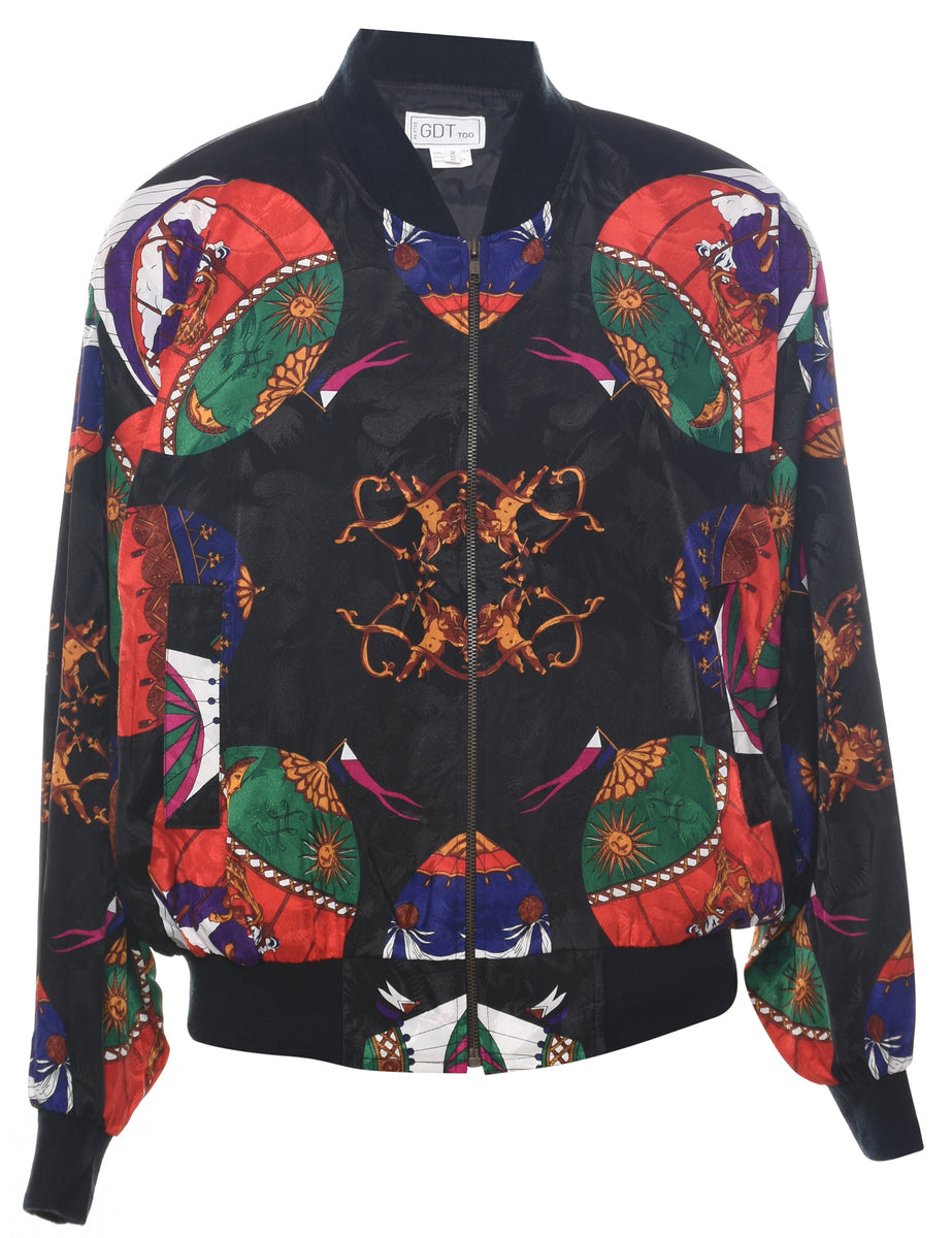 Zip front bomber jacket comes in multi-colour with multiple pockets and shoulder pads.