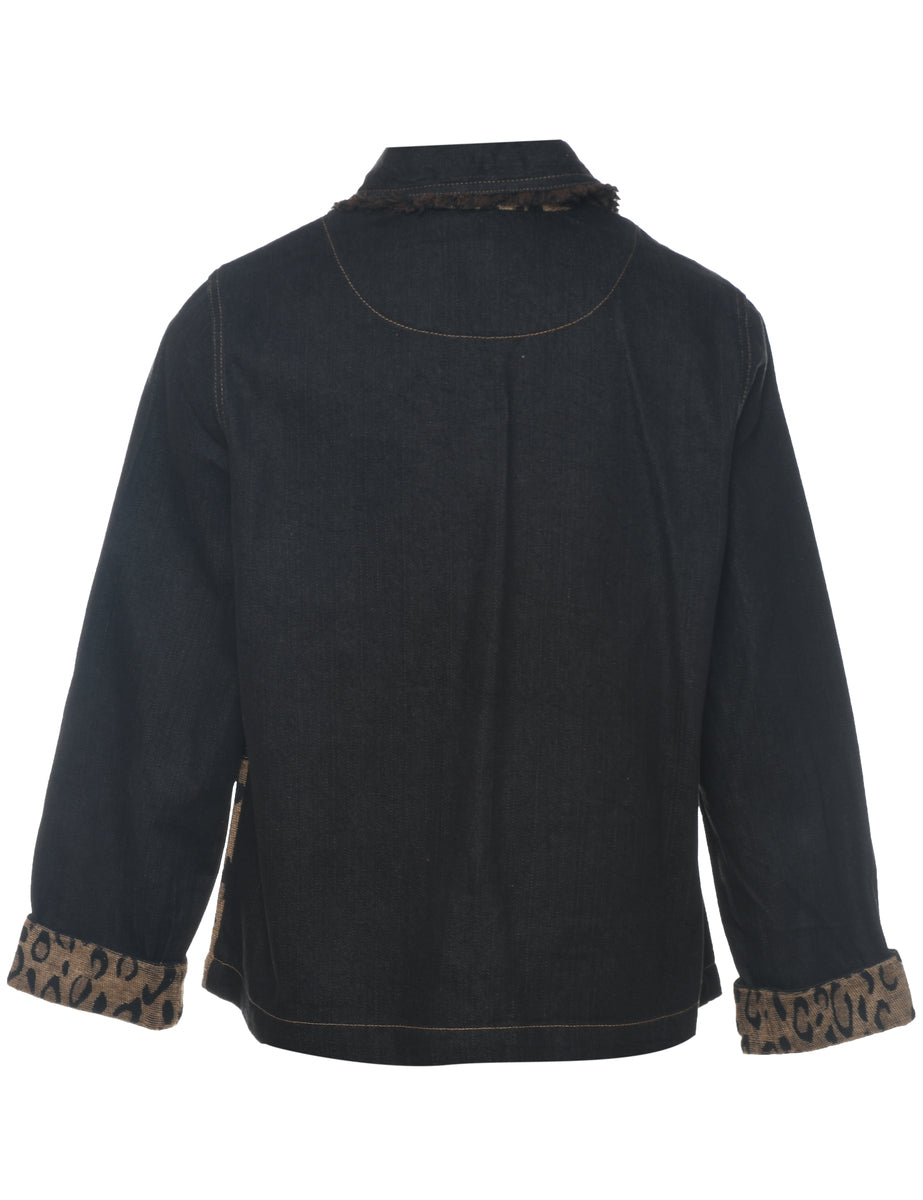 Vintage 1990s Animal Print Denim Jacket - L