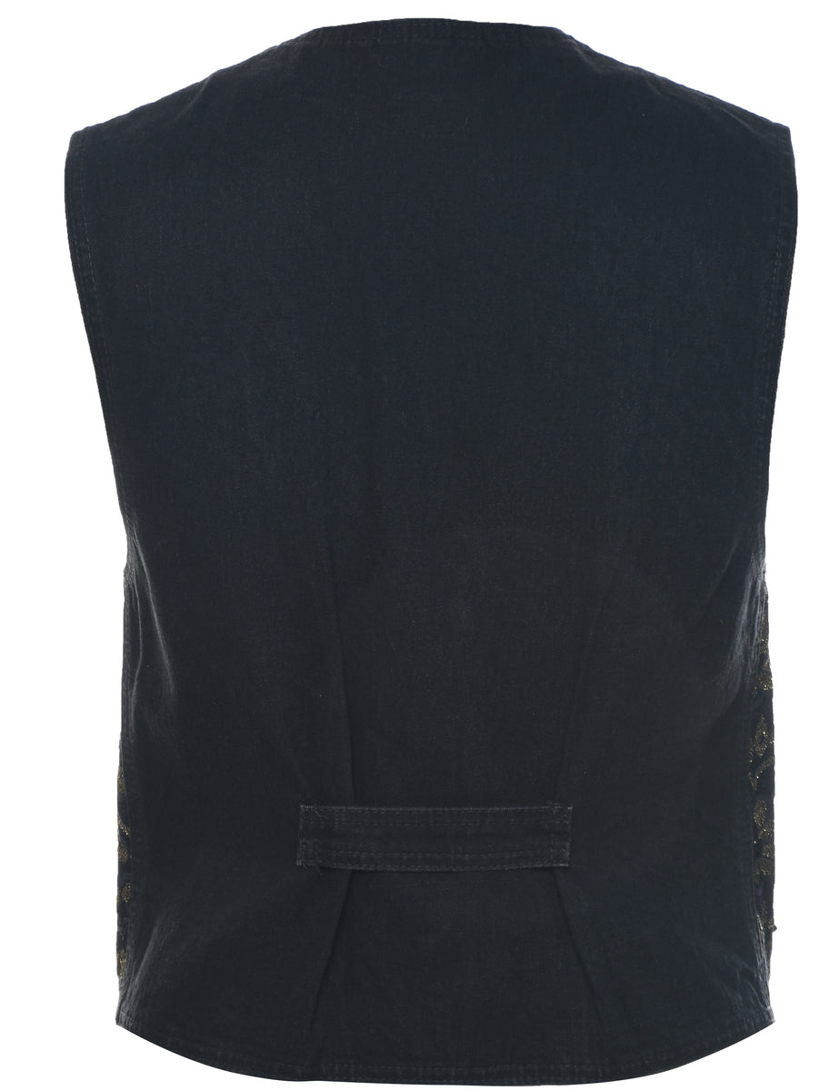 Vintage Floral Pattern Denim Jacket Vest - S
