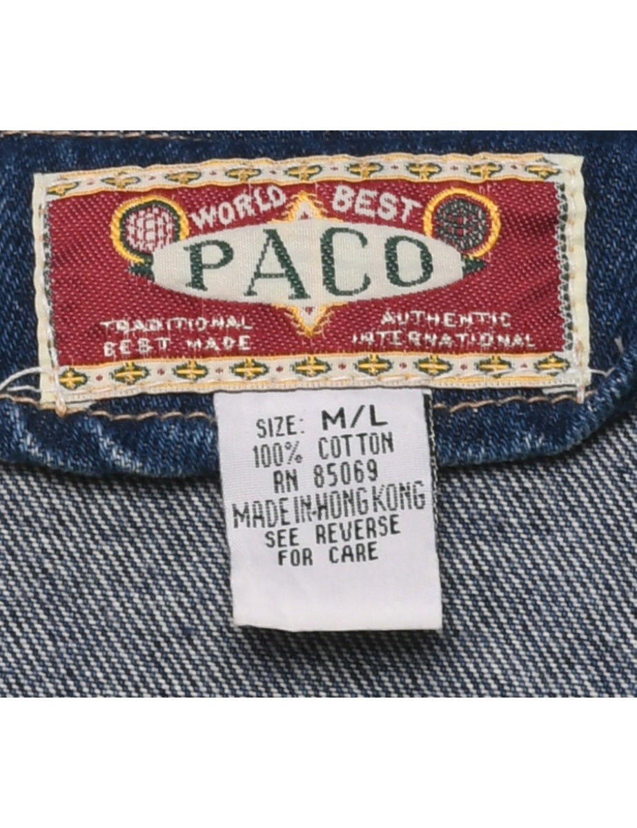 Zip front denim jacket vest in stone wash with multiple pockets.