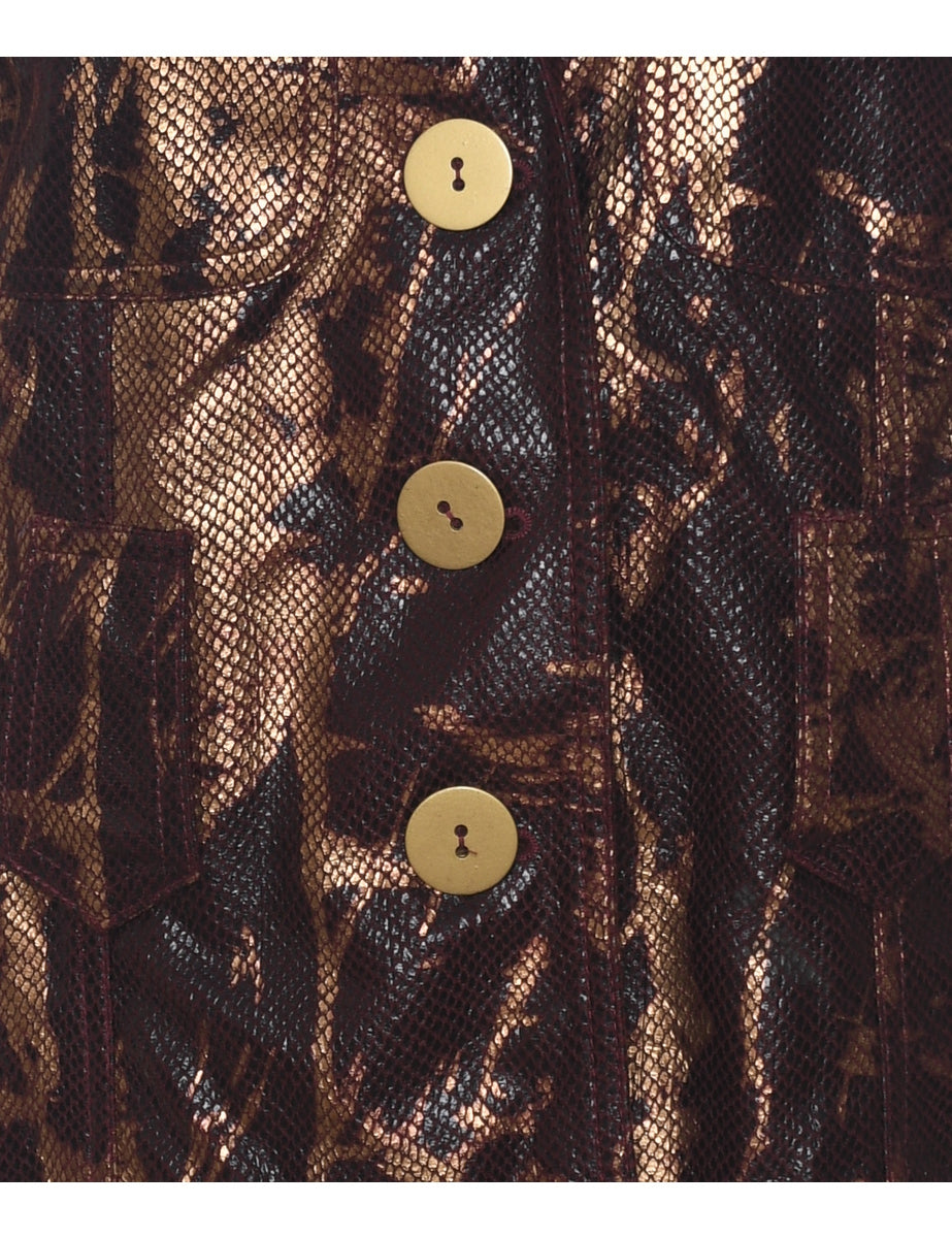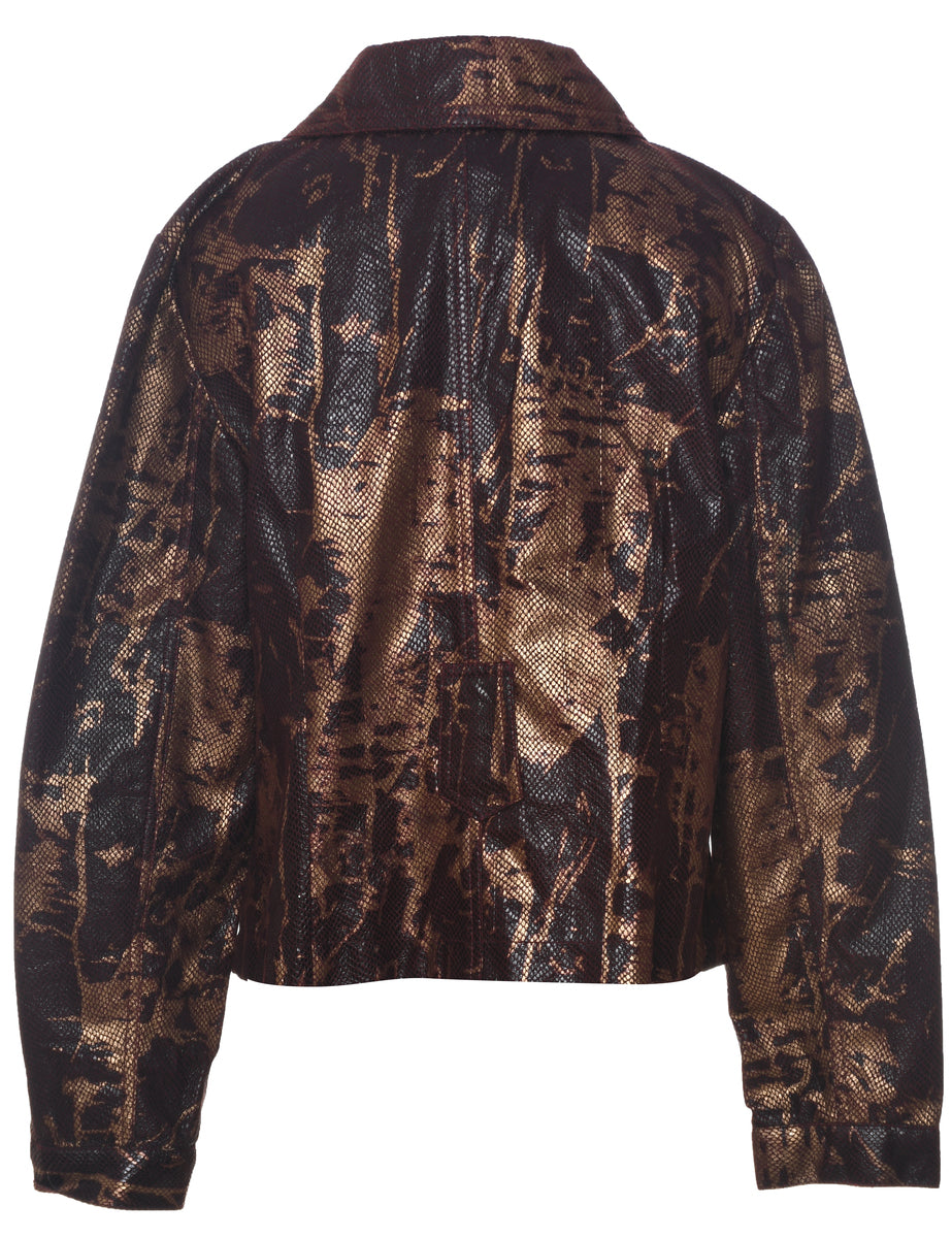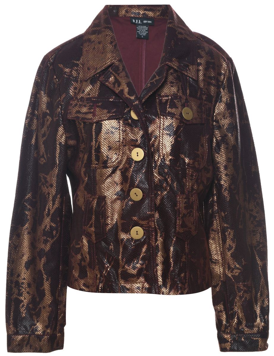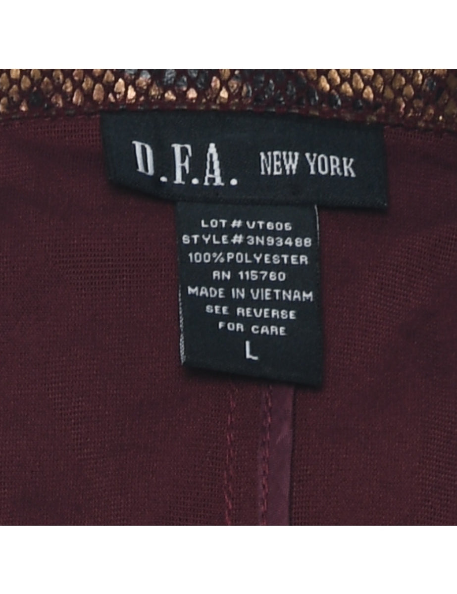Animal print evening jacket comes in maroon with multiple pockets and belt. Button missing from pocket but otherwise good condition.