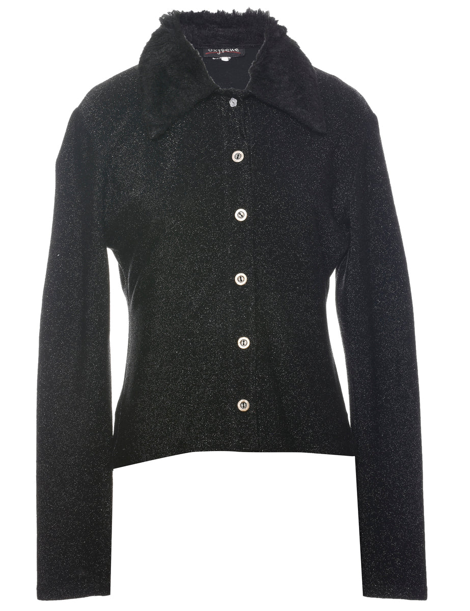 Vintage Black Faux Fur Trim 1990s Evening Jacket - M