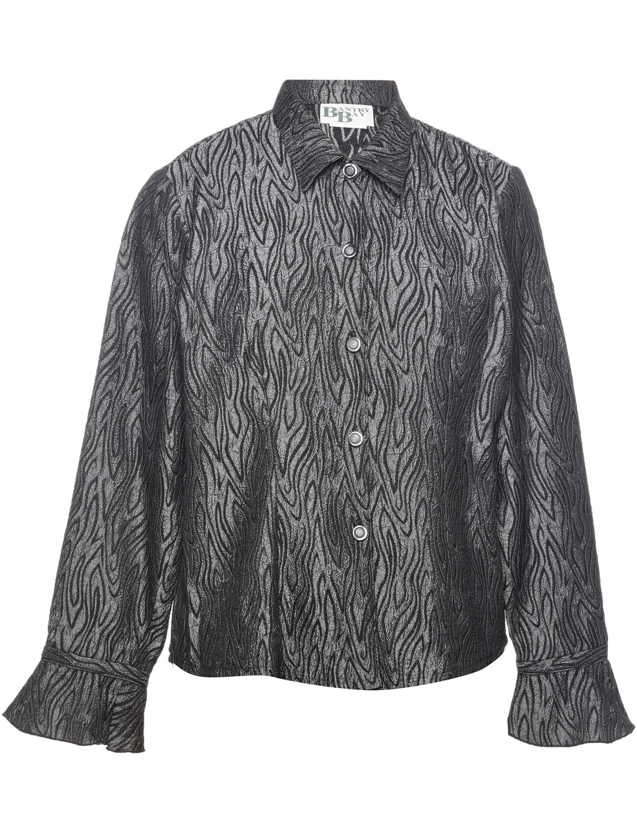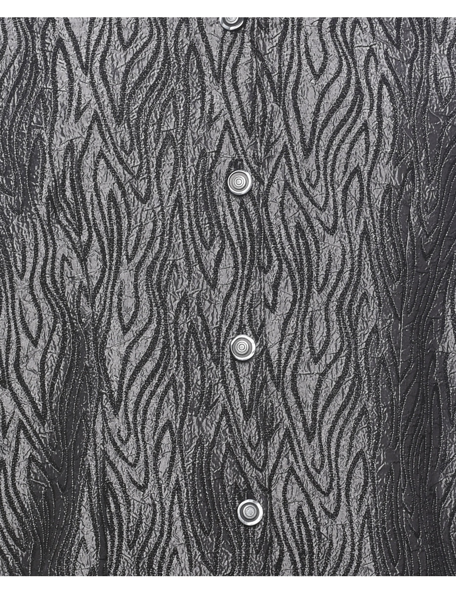Vintage Black & Silver Animal Print 1990s Evening Jacket - L