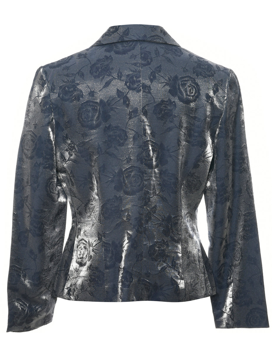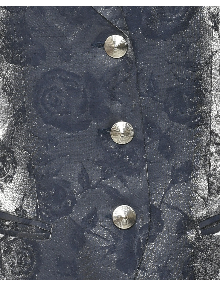 Floral pattern evening jacket in dark grey with shoulder pads.