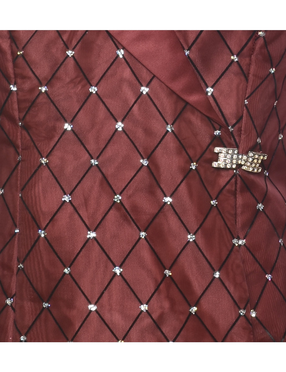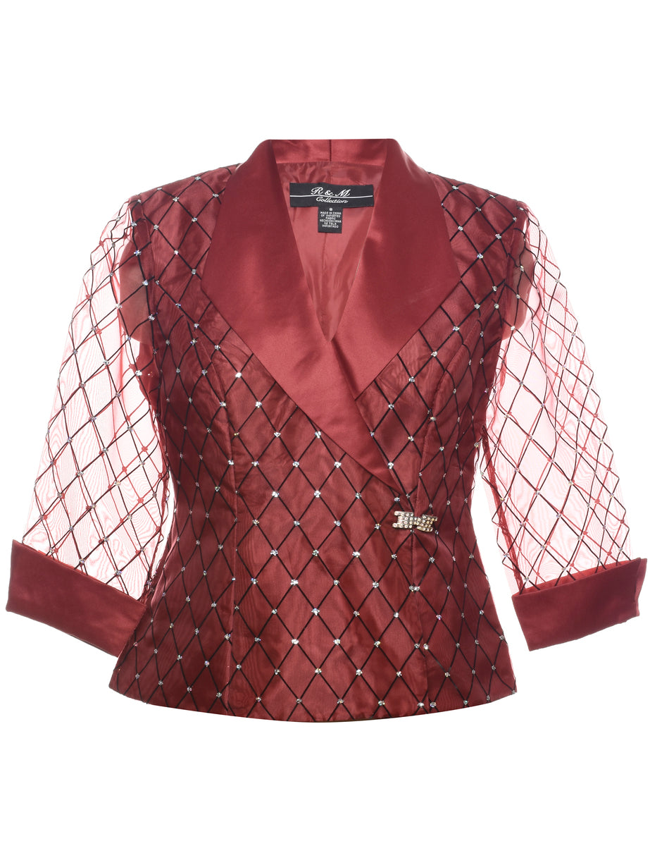 Vintage Maroon 1980s Sheer-Sleeved Evening Jacket - M