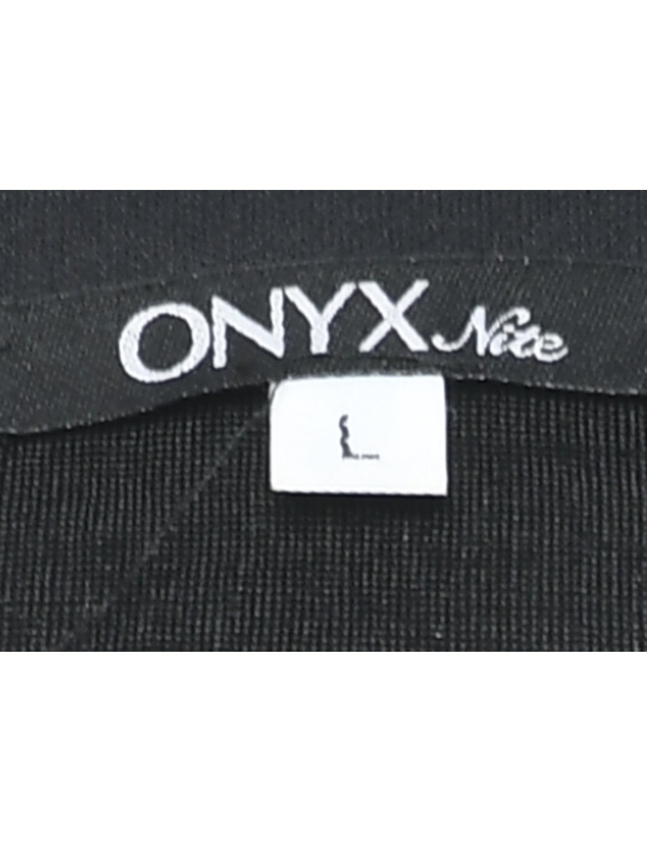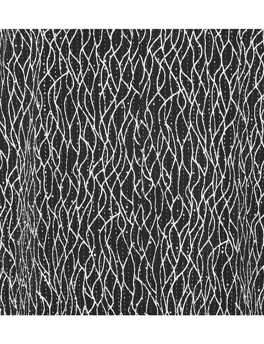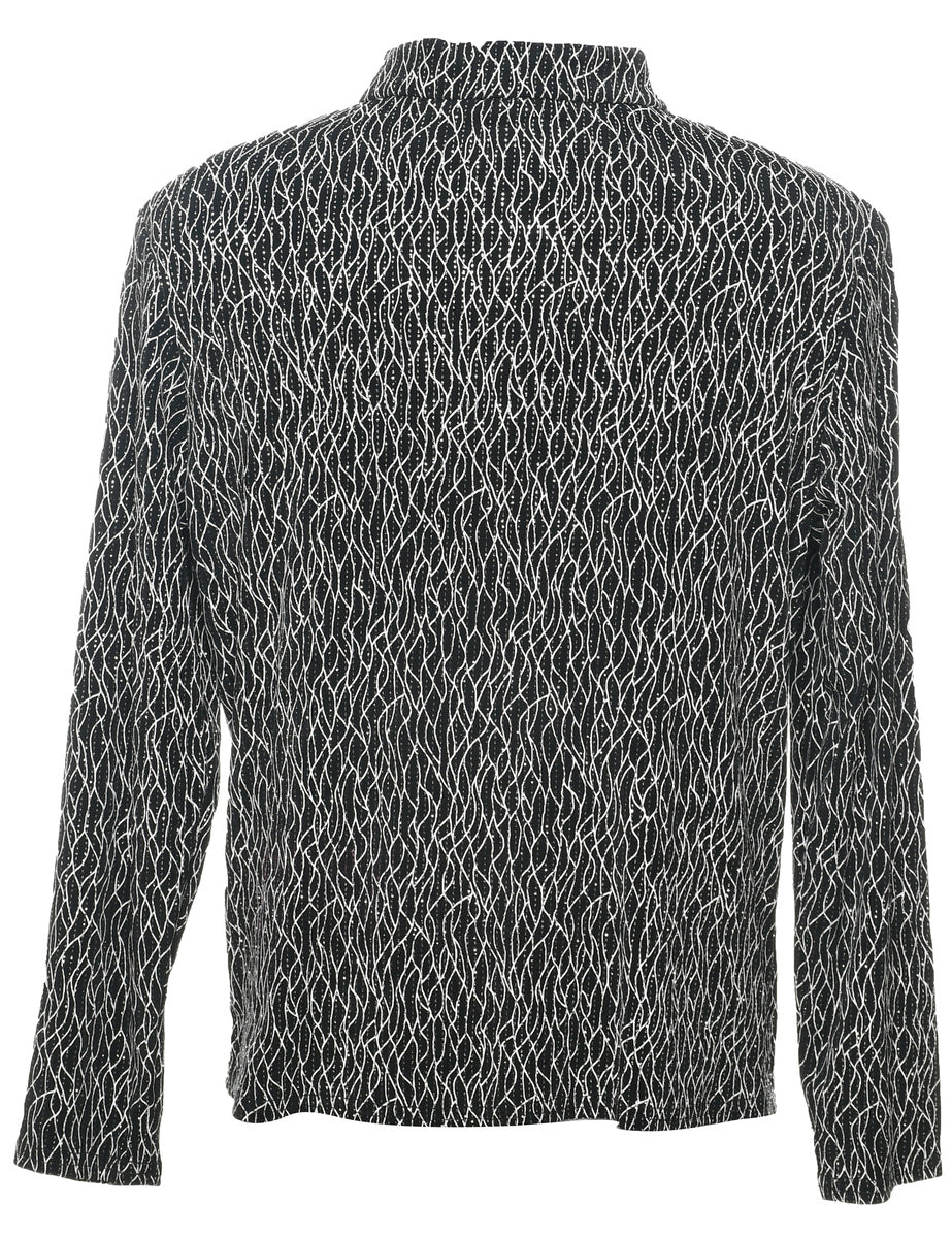 Evening jacket with metallic finish comes in black with shoulder pads.