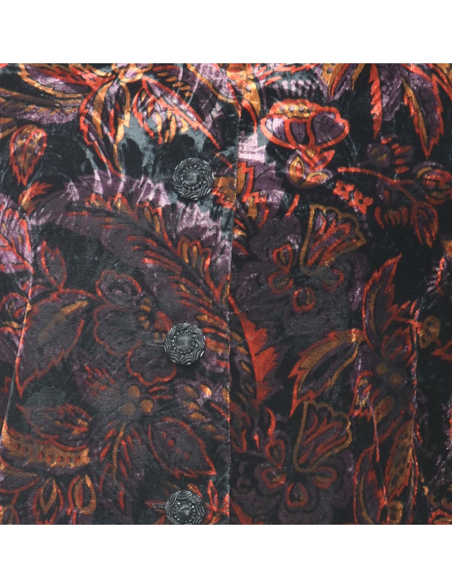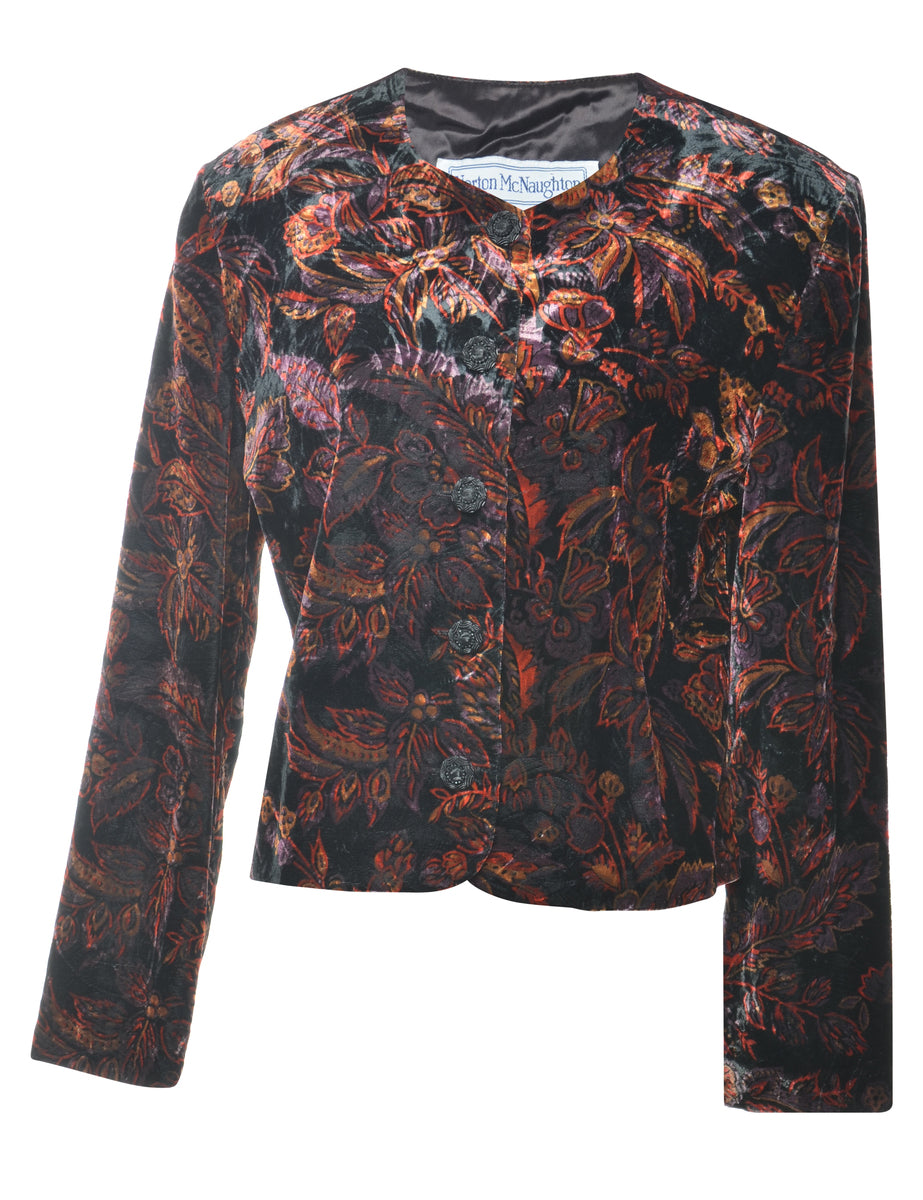 Norton Mc Naughton velvet evening jacket with floral print. Comes in multi-colour with removable shoulder pads and long sleeves.