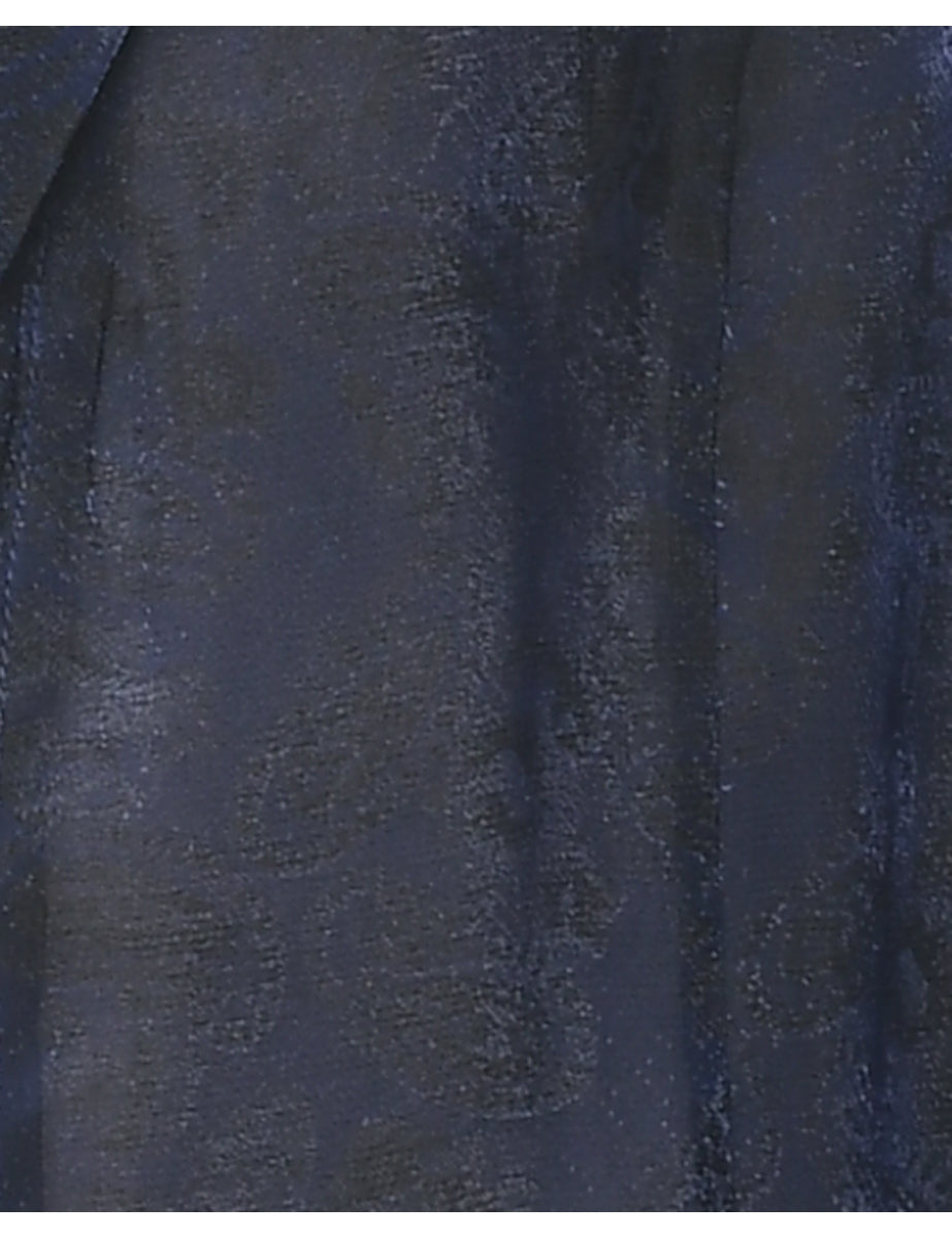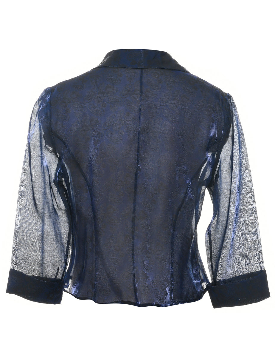 Paisley pattern evening jacket with sheer effect comes in navy.