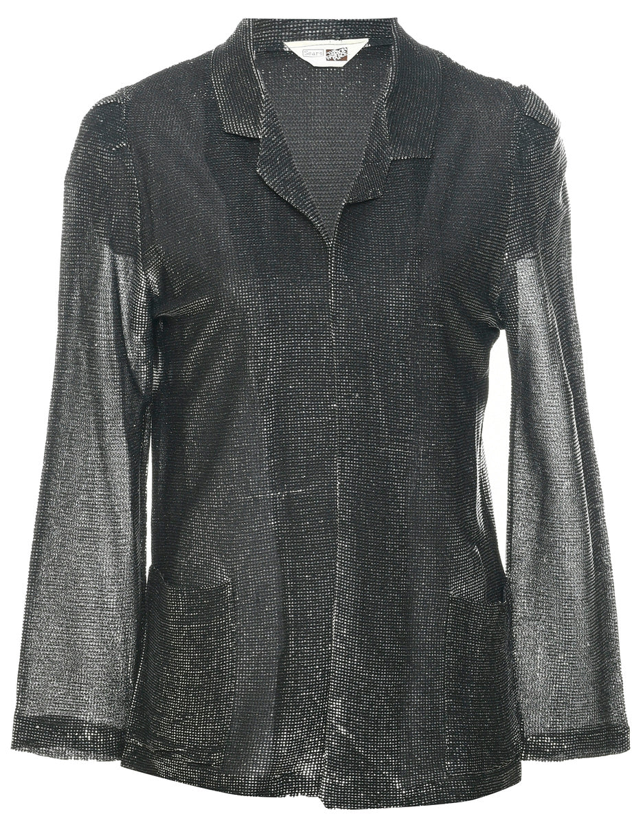 Sears lurex thread pattern evening jacket. Comes in black with multiple pockets.