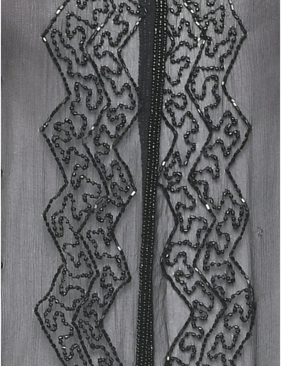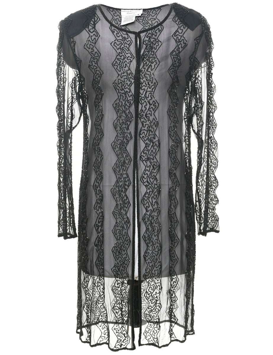 Beaded evening jacket with sheer effect. Comes in black with shoulder pads.