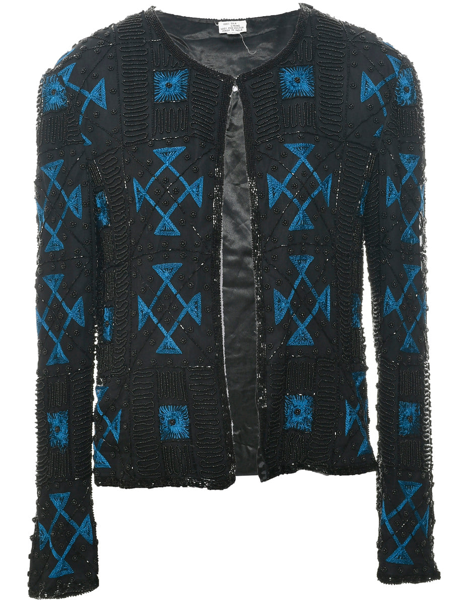 Vintage Silk Beaded Evening Jacket - M