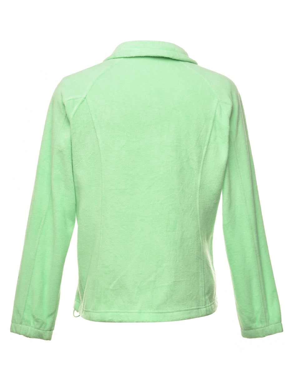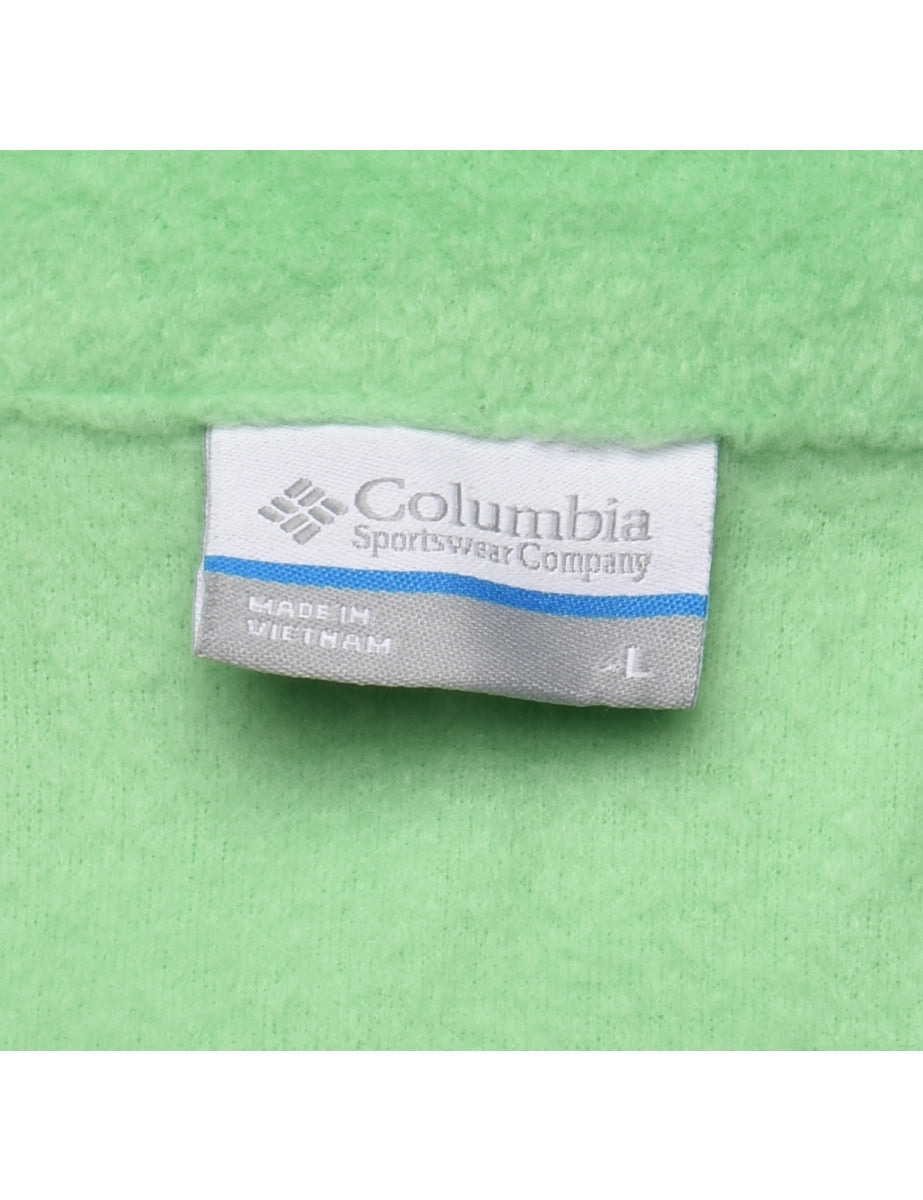 Columbia fleece sweatshirt in light green with zippered pockets and raglan sleeves.